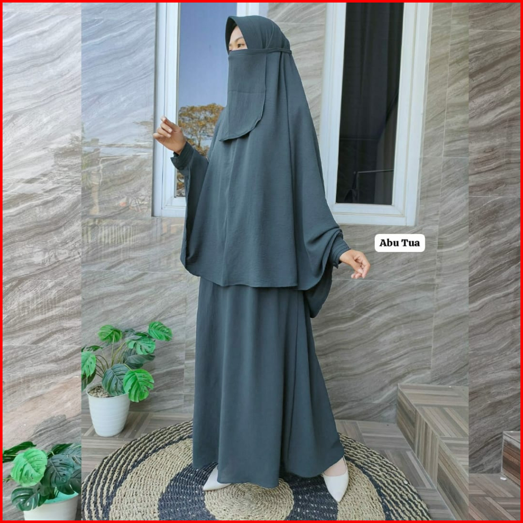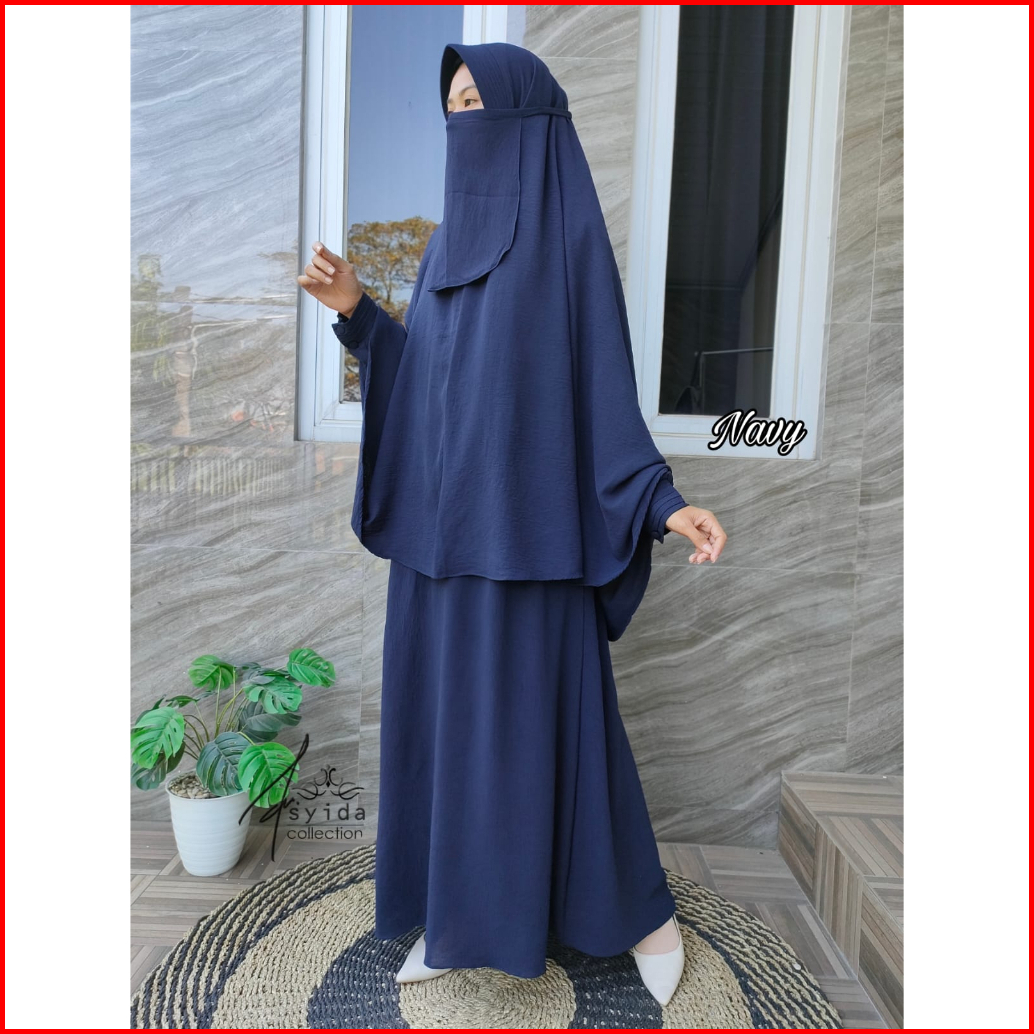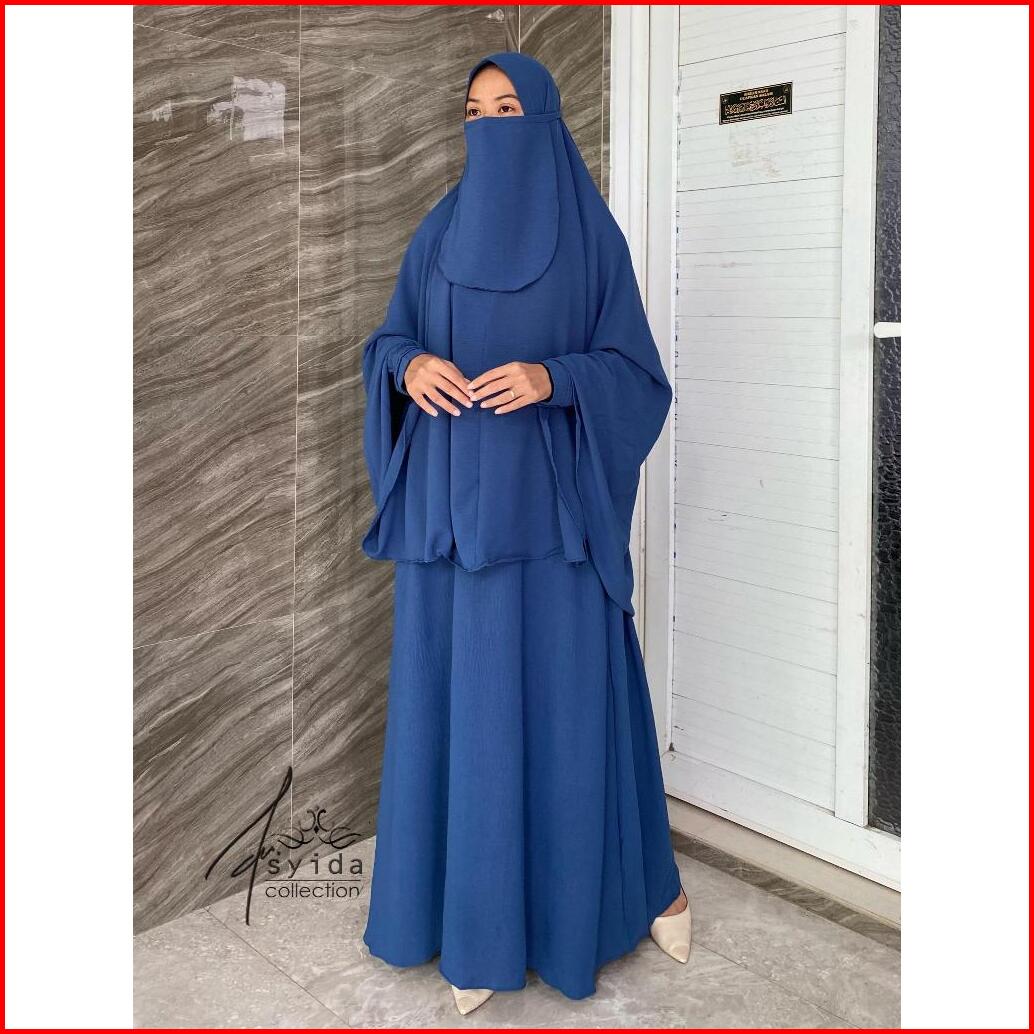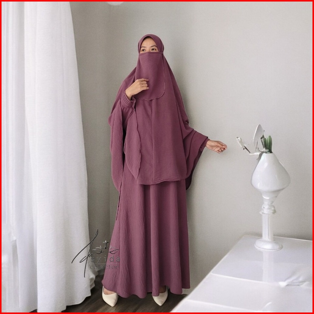 Gamis Set Hijab Plus Niqob Cadar Jumbo Busui Yasha Abaya Set Syar I Terbaru