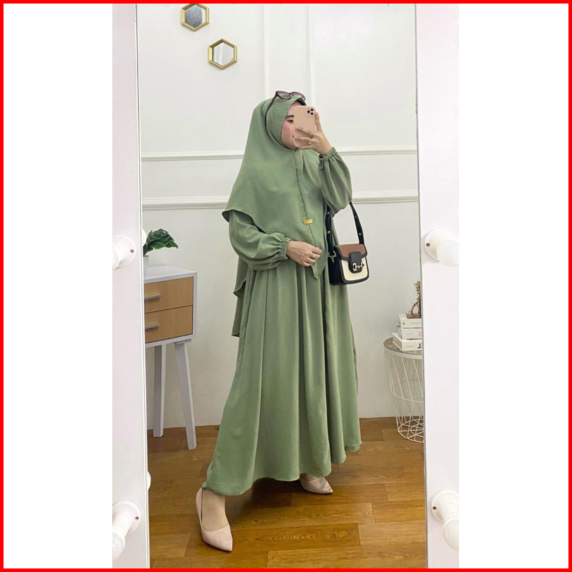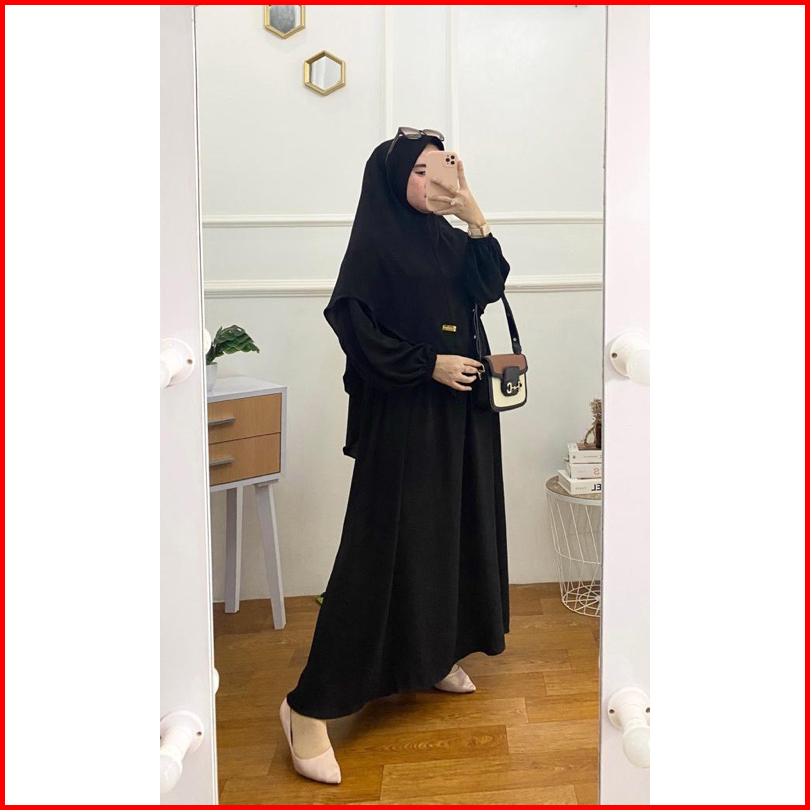 Gamis Muslim Wanita Syari Bilqis Set Hijab Bahan Crincle Airflow Premium Simpel Remaja Kekinian Gaun Ootd Polos
