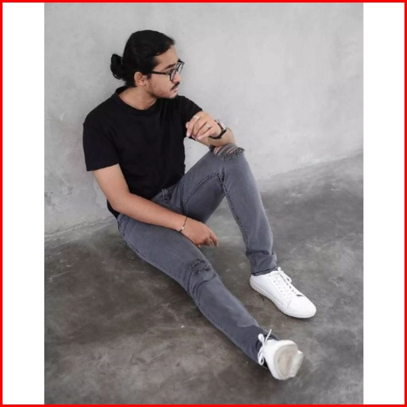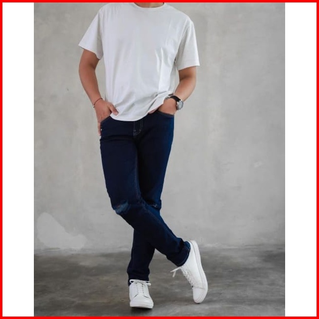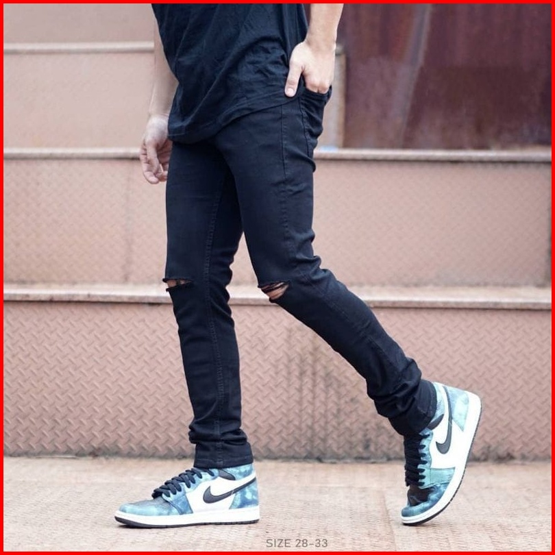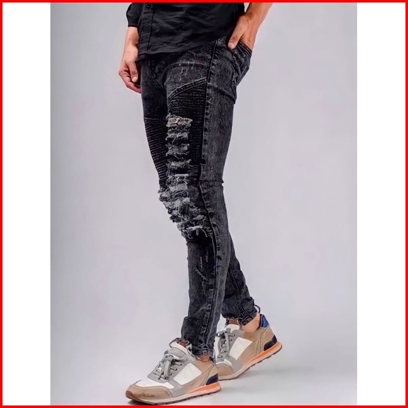 Skinny Jeans Bikers Pria Celana Jeans Sobek Ripped Jeans Pria Premium Celana 29-34 - Celana Jeans Panjang Bikers Snow Ri