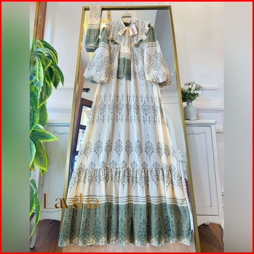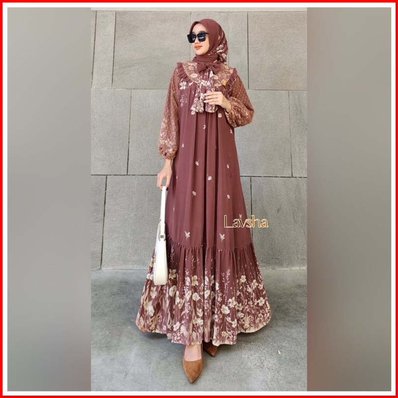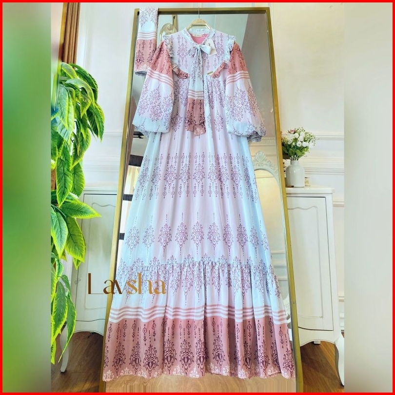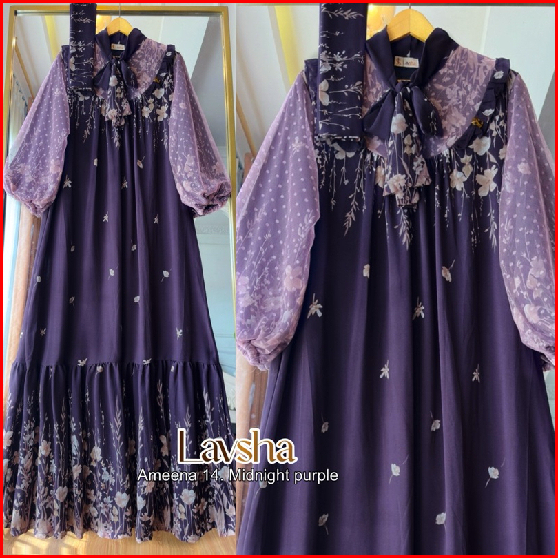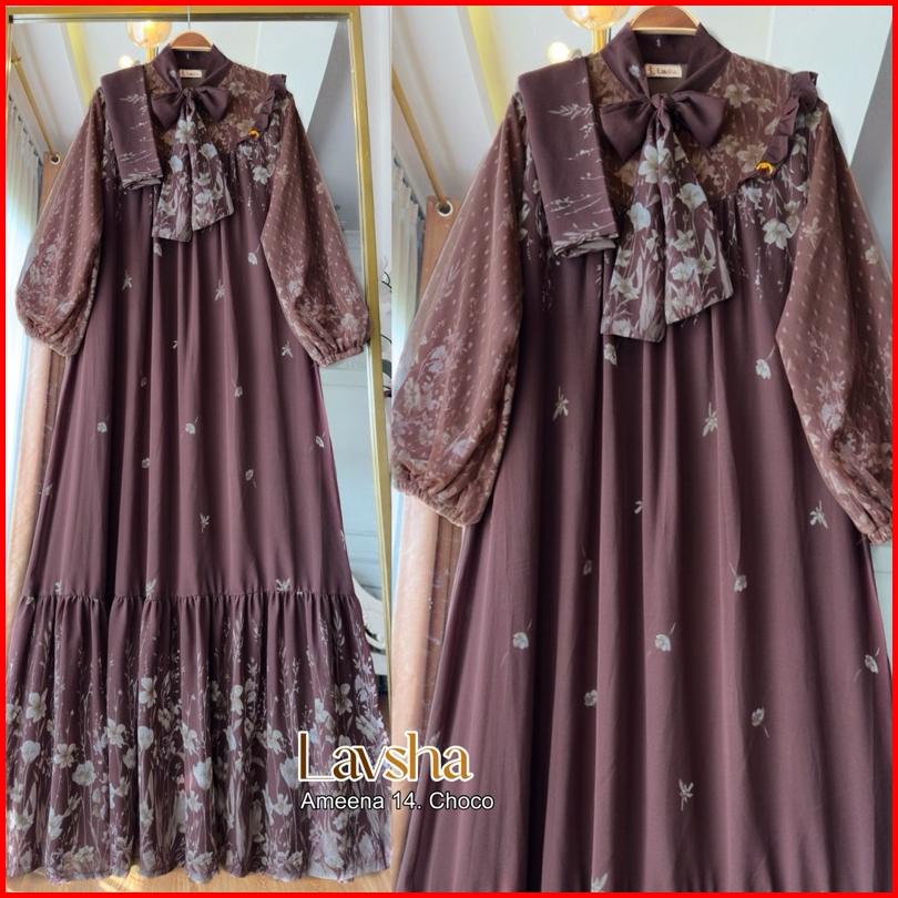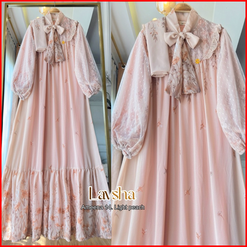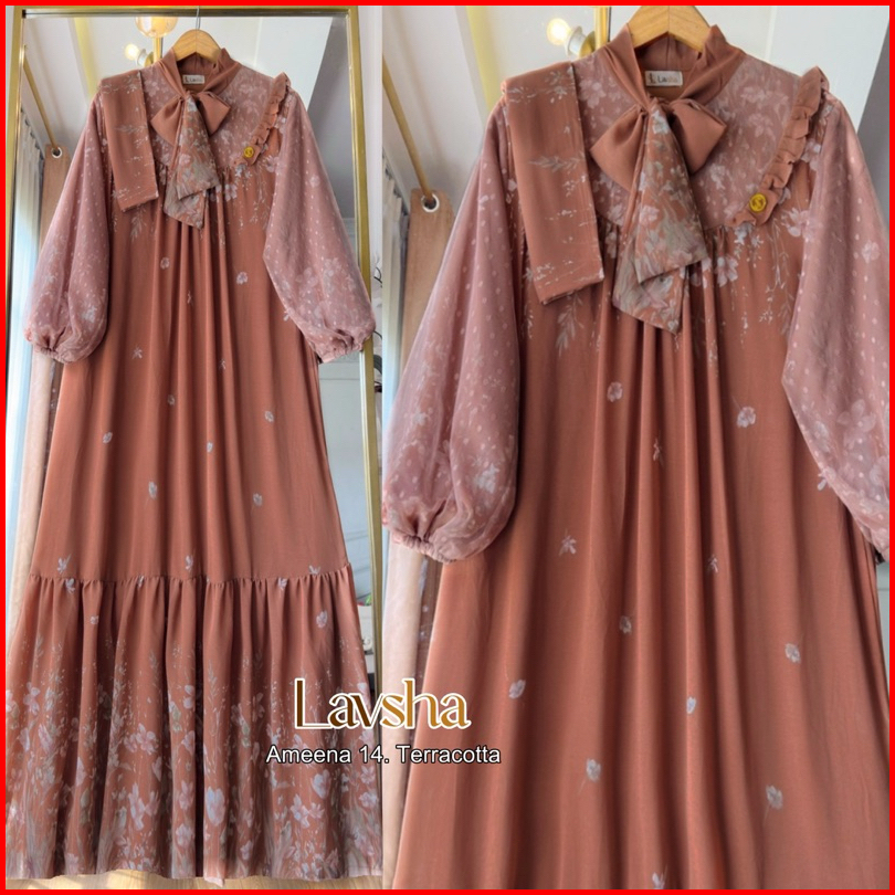 Ameena Set Hijab Gamis Set Hijab Wanita Muslim Ceruty Babydoll Armany By Lavsha