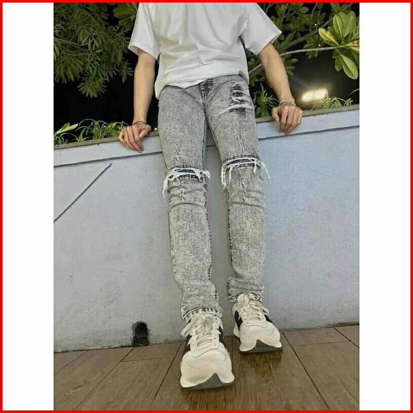 Celana Jeans Sobek Lutut Robek Ripped Hitam Destory Premium Celana Jeans Pria Denim