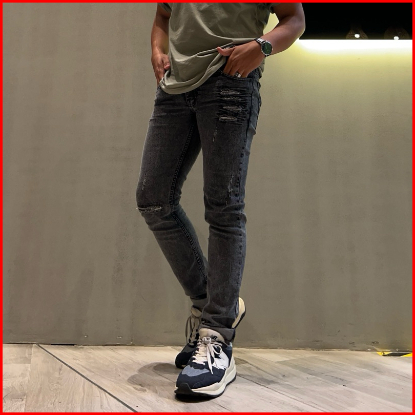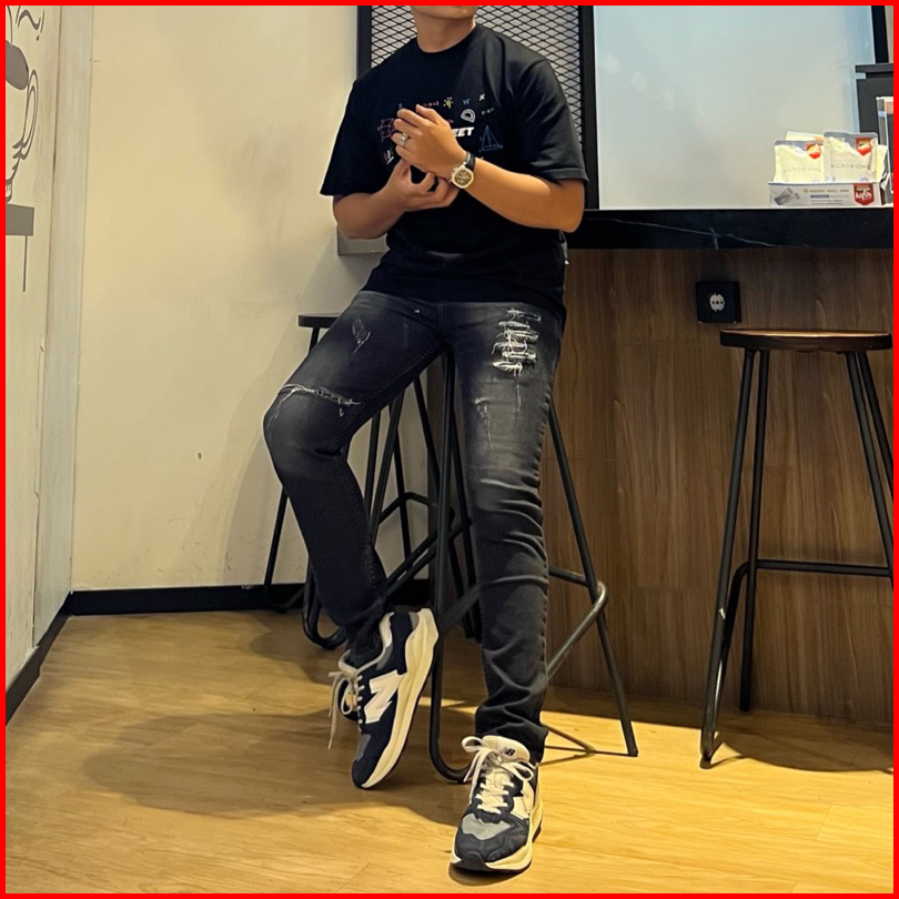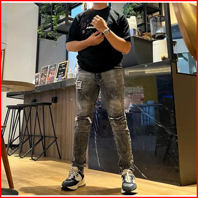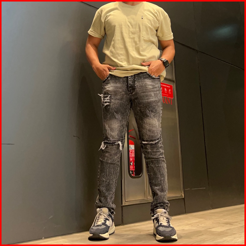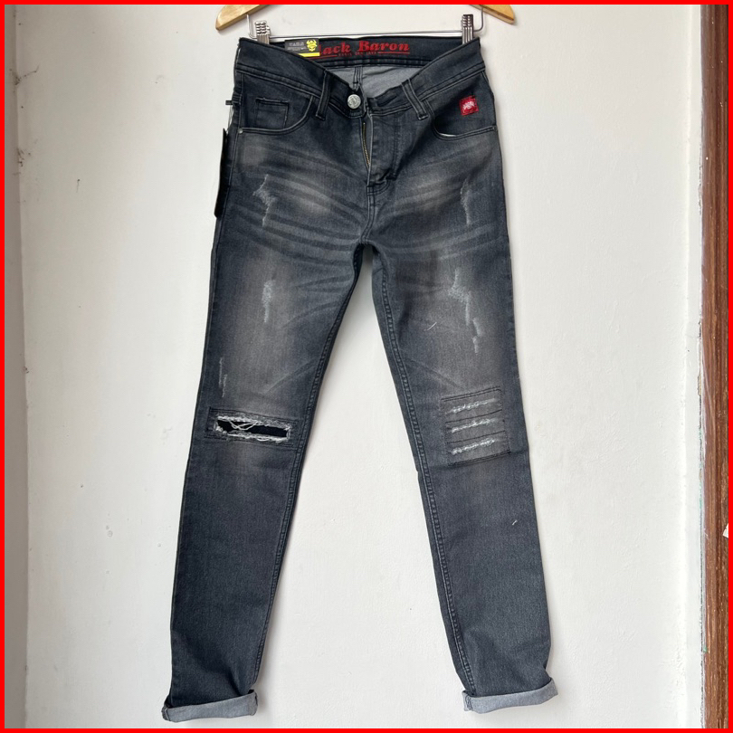 Celana Jeans Sobek Panjang Pria Black Baron Ripped Distro Original Slim Fit Strech Mulur Terbaru Snow Jeans Import Sobek