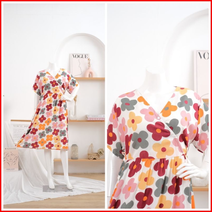Daster Pendek Selutut Busui Friendly Rayon Premium Kekinian Hana Dress Queena Homedress Busui Friendly Rayon Premium