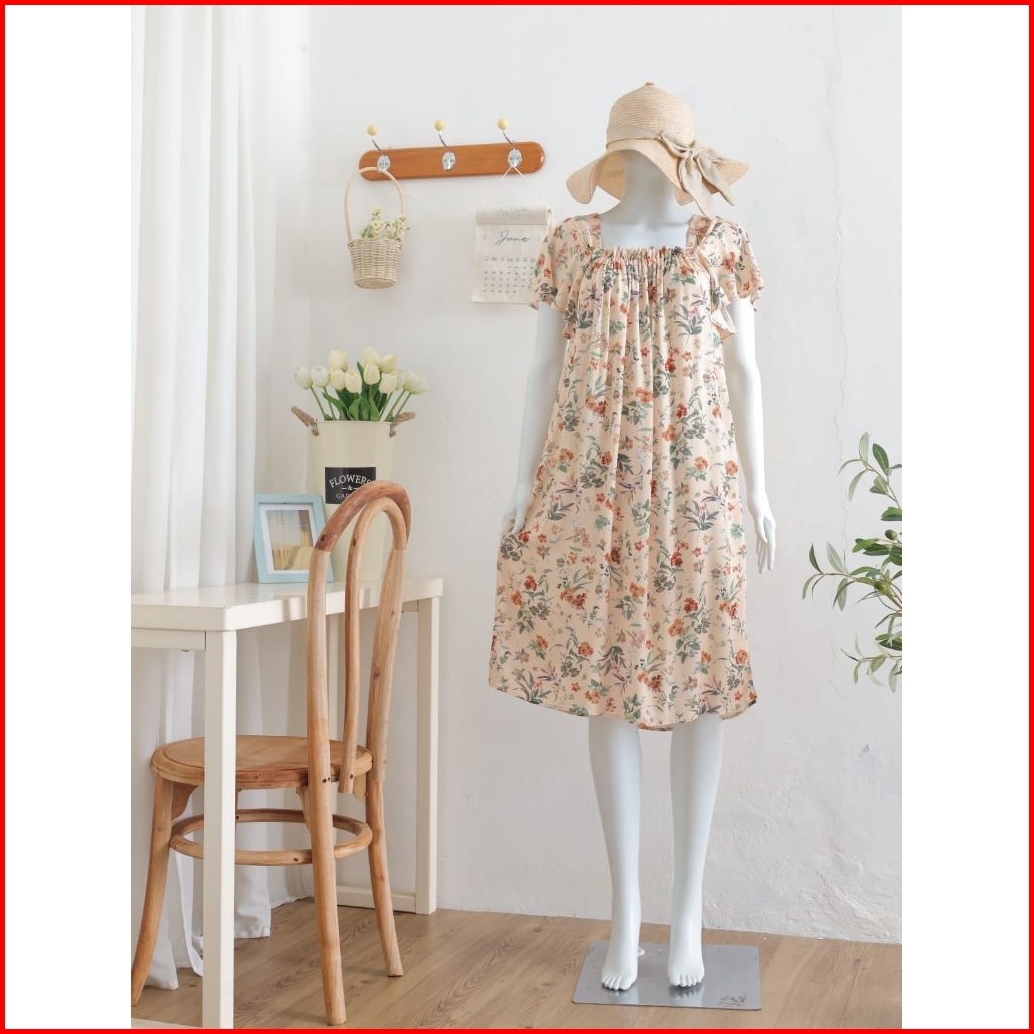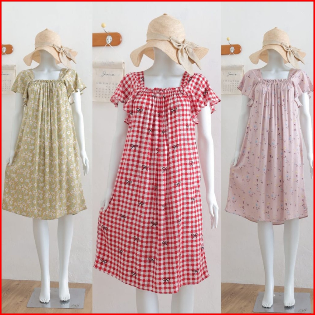 Queen Dress Daster Casual Selutut Homedress Busui Pendek Bahan Rayon Ld 110