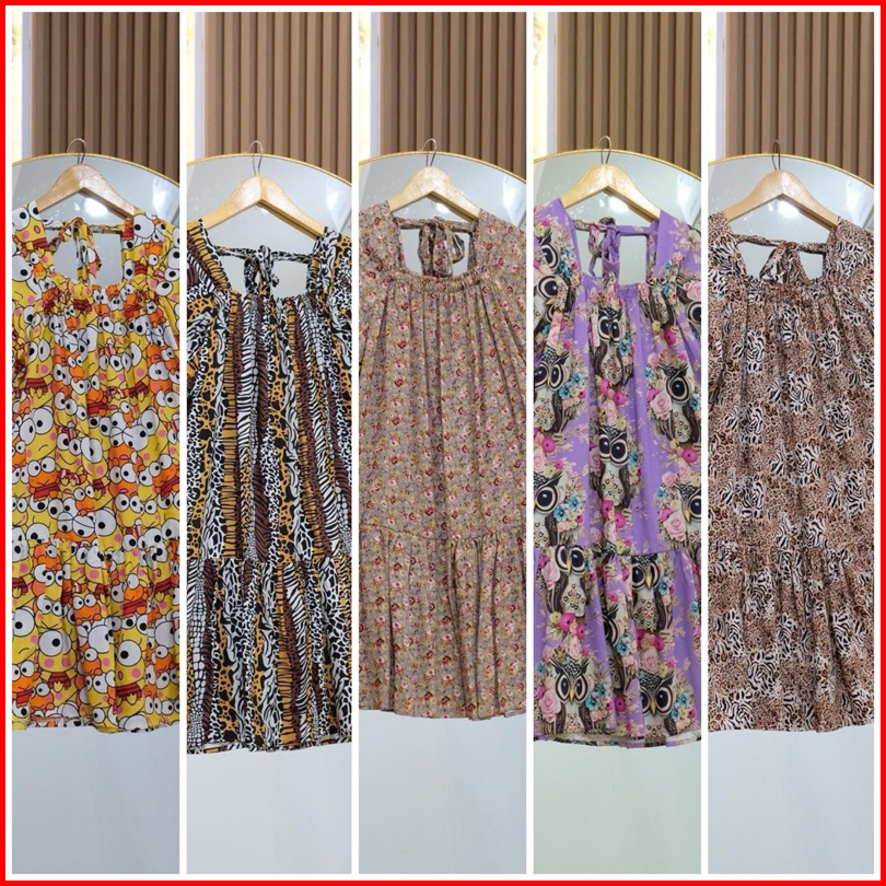 Daster Motif Kekinian Tali Belakang Bisa Lepas Pasang Dress Motif Kekinian Mahika Dress