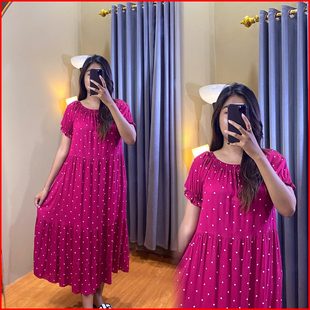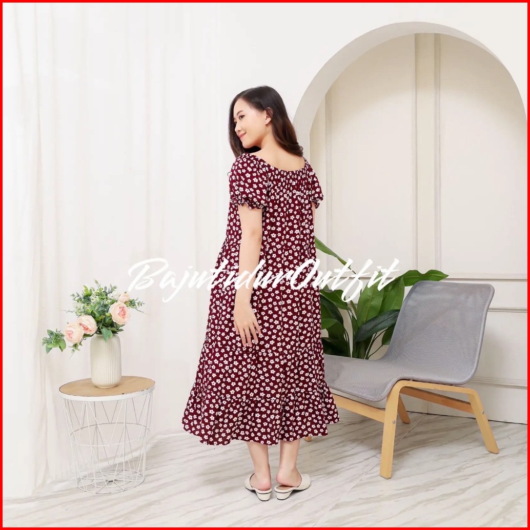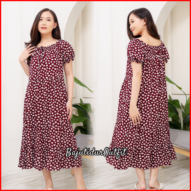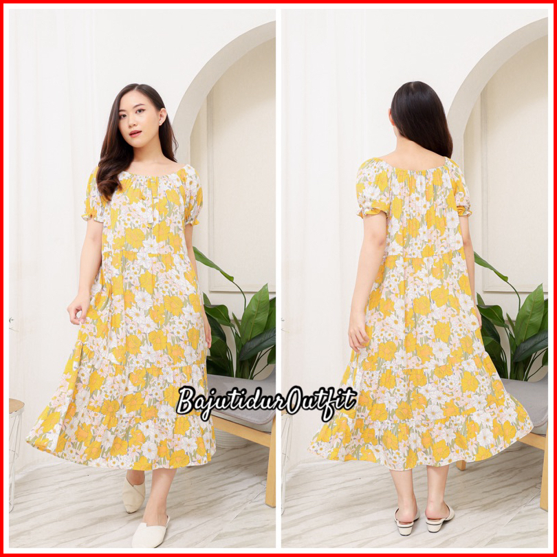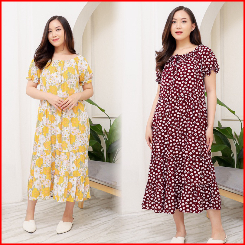 Dila Dress Daster Motif Kekinian Lengan Karet Bahan Rayon