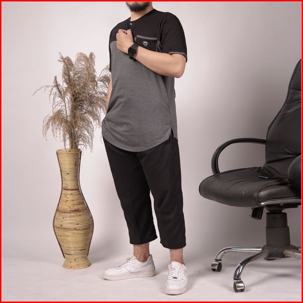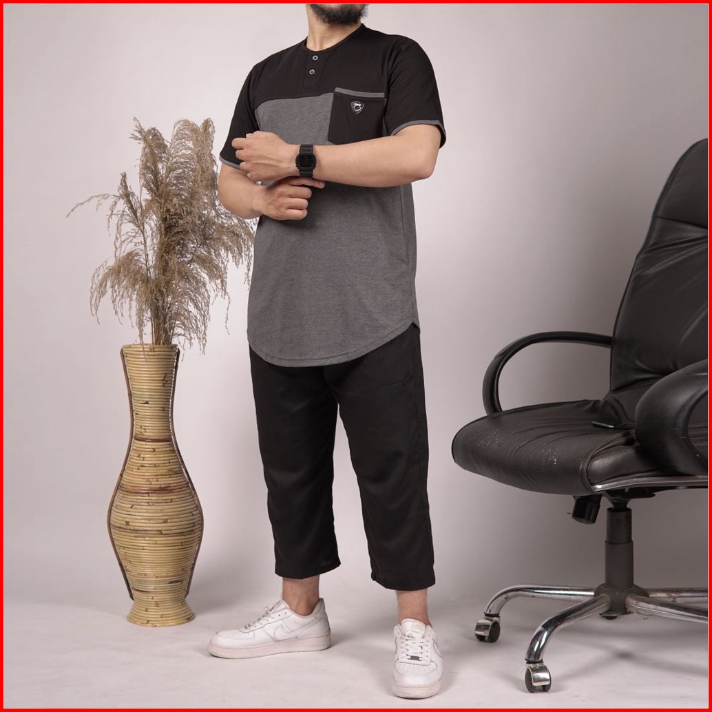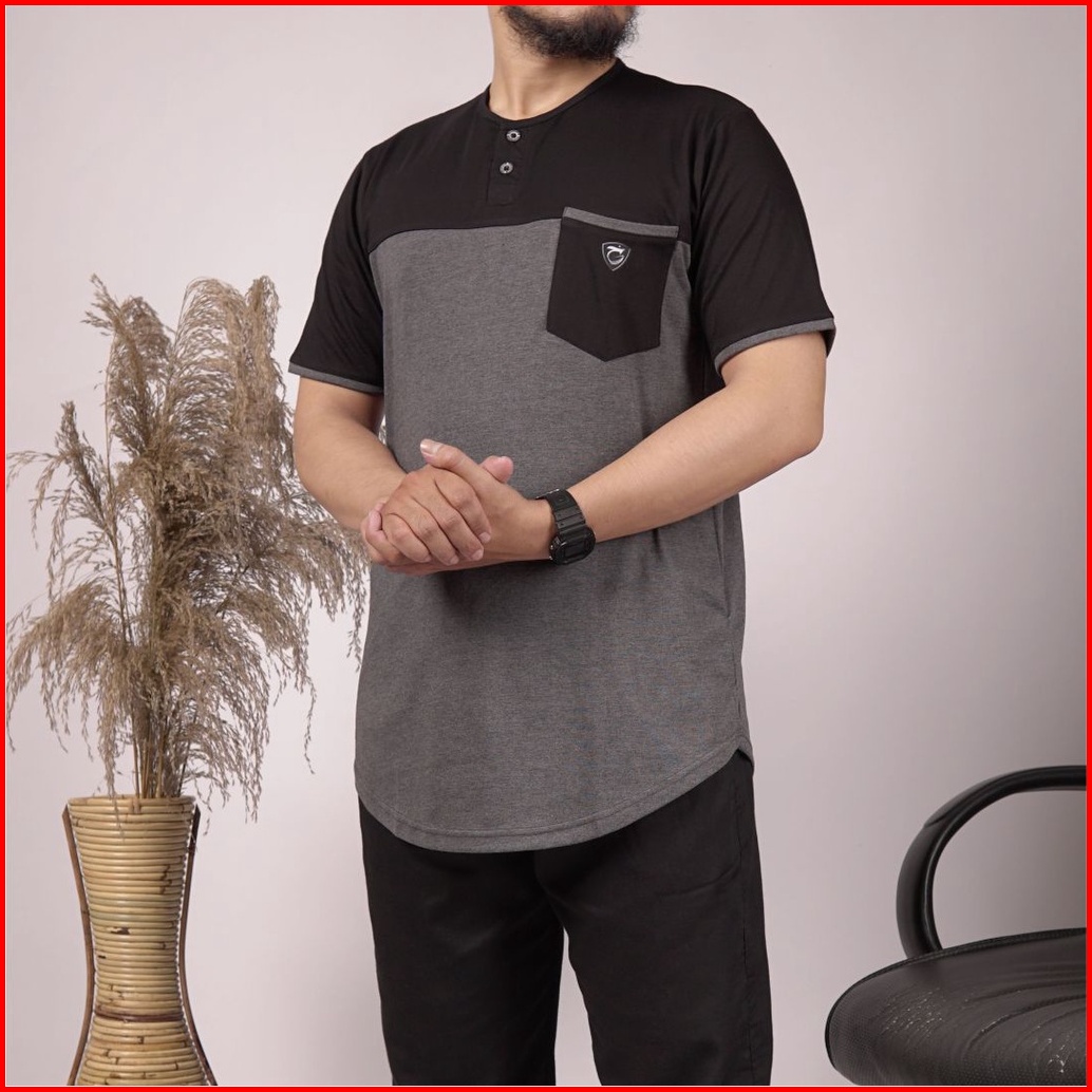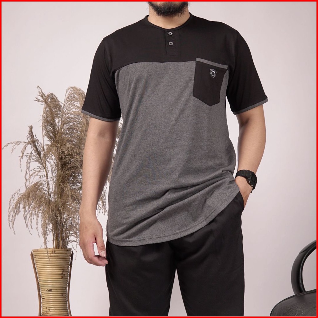 Khoirummah Koko Kurta Sa Ad Koko Pria Dewasa Kaos Kurta Lengan Pendek Dark Grey