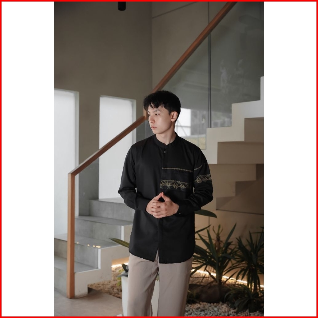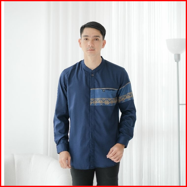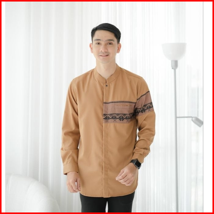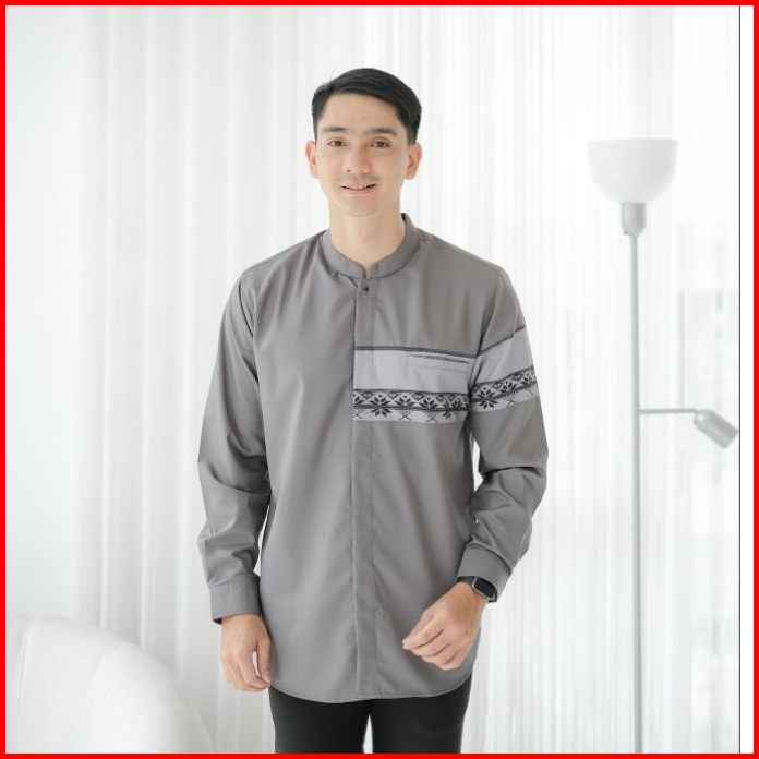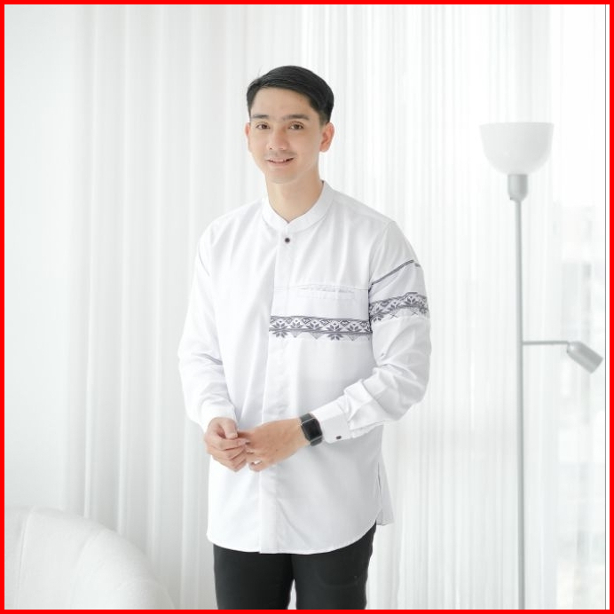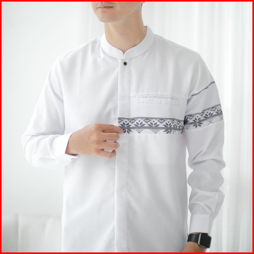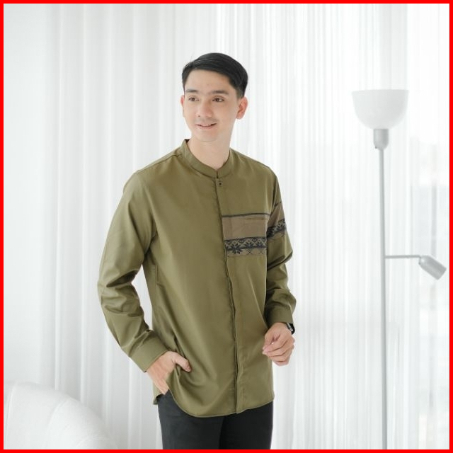 Baju Koko Pria Lengan Panjang Kemeja Koko Warna Putih Navy Mocca Abu Hitam Olive M L Xl