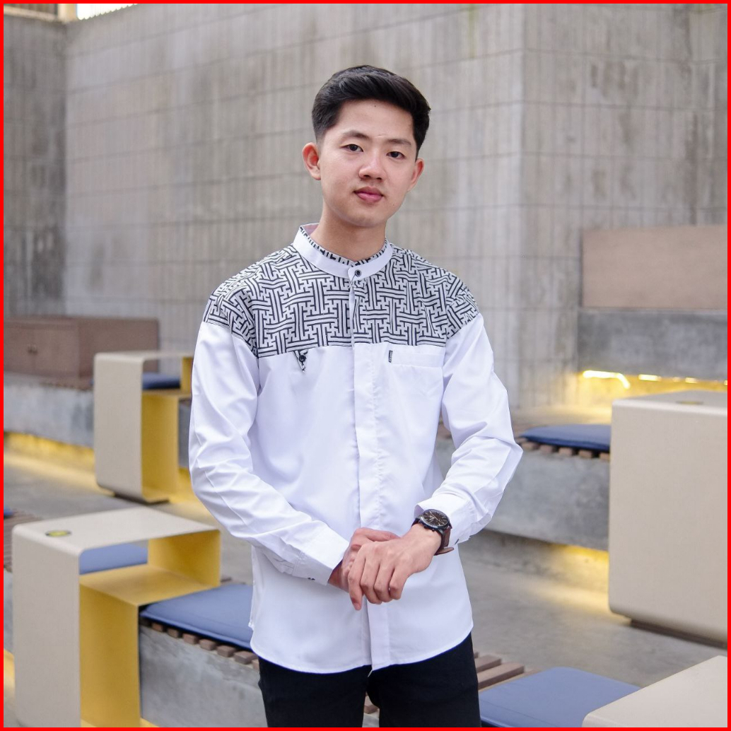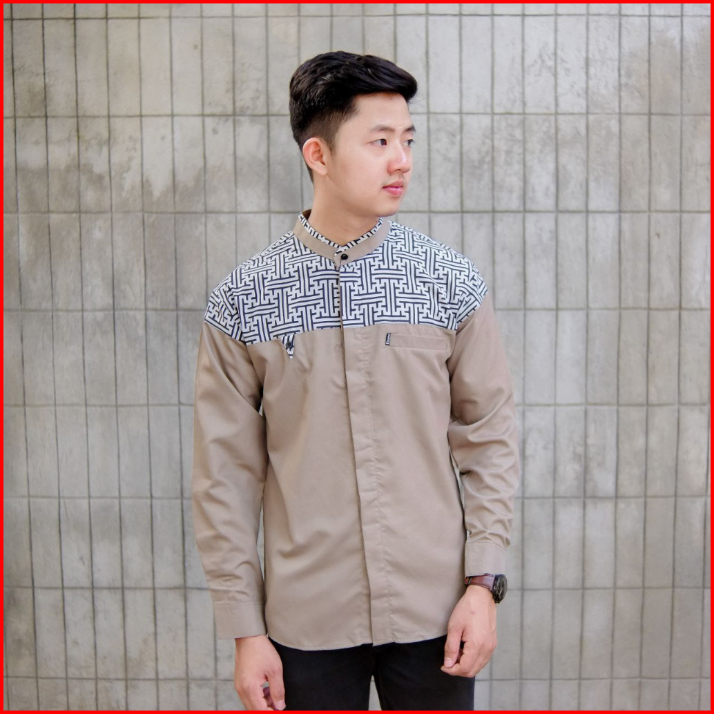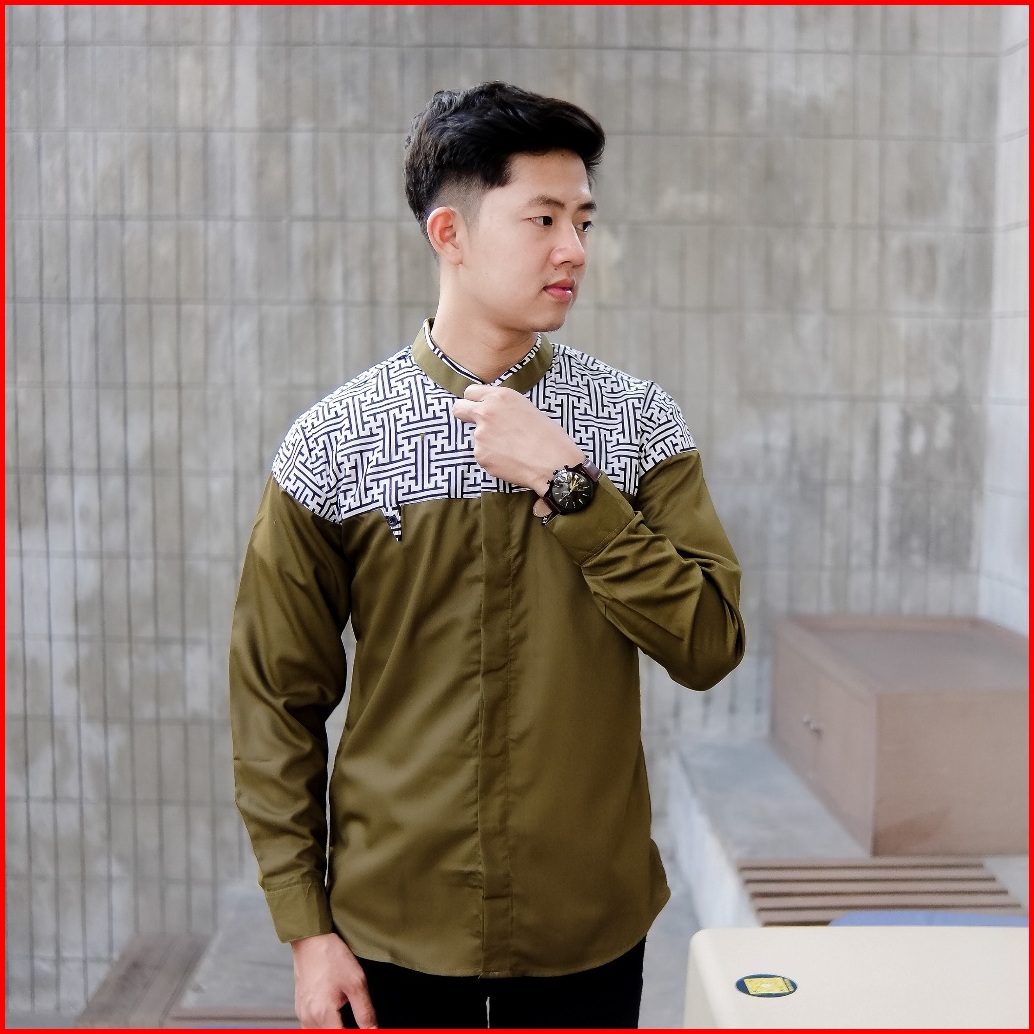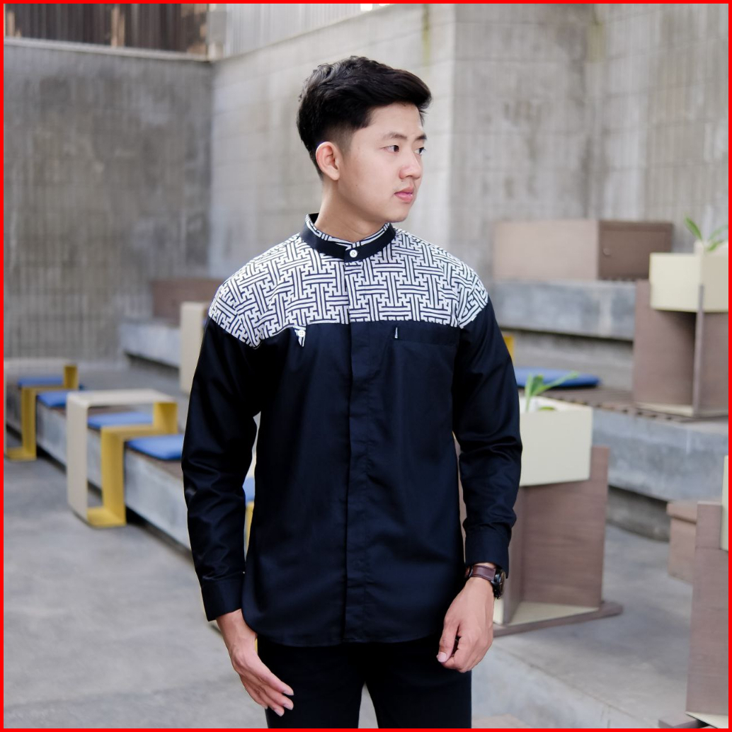 Kemeja Koko El Rumi Baju Koko Lengan Panjang Berkombinasi Batik Motif Valcon