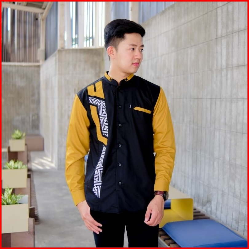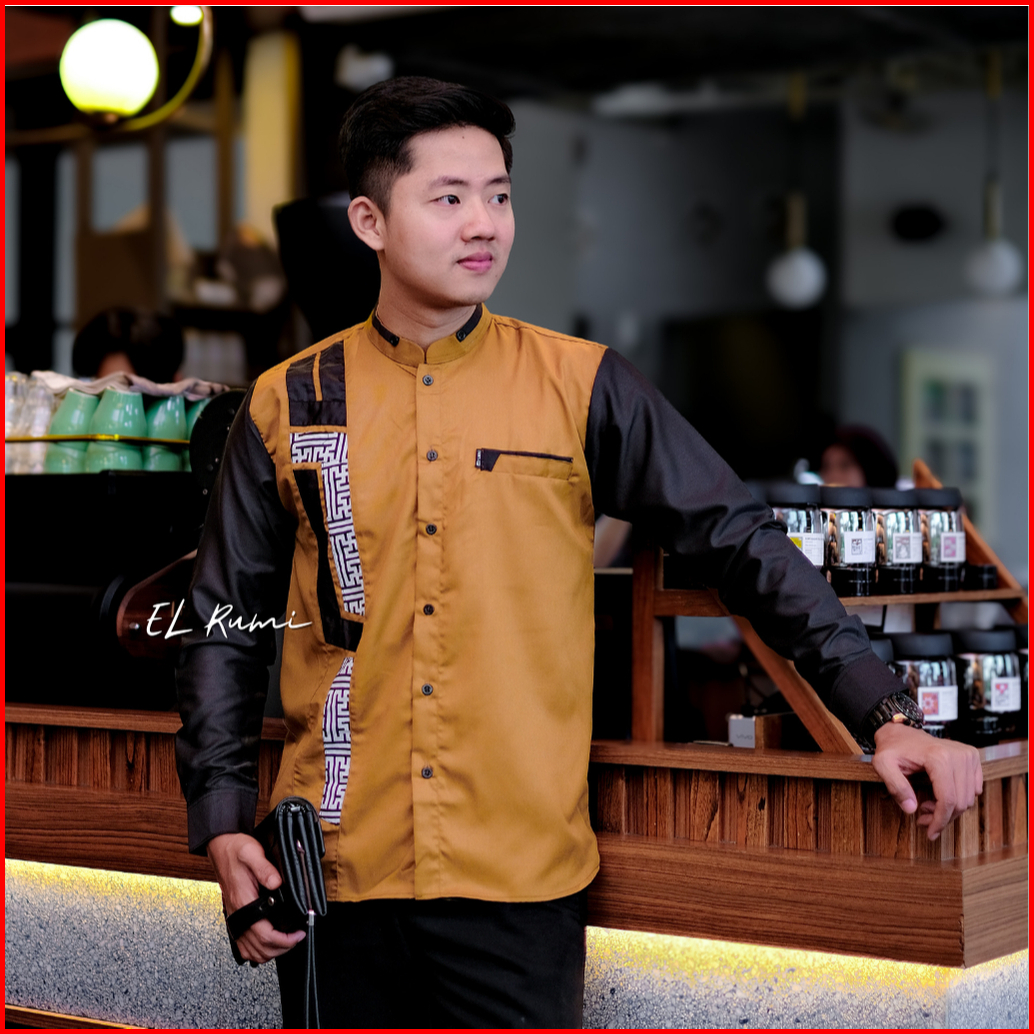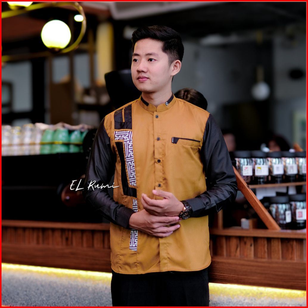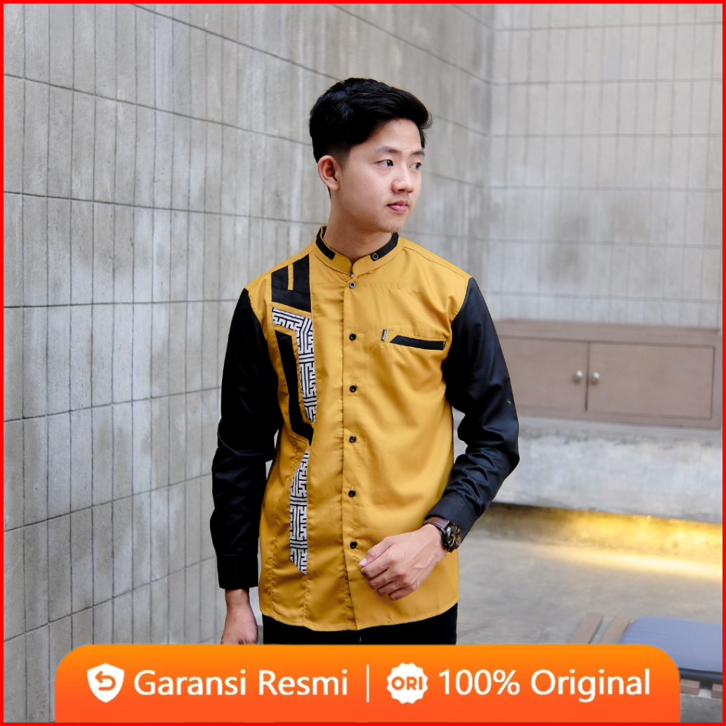 Baju Koko Pria Lengan Panjang Dewasa Slimfit Motif Sinergi Original Elrumi
