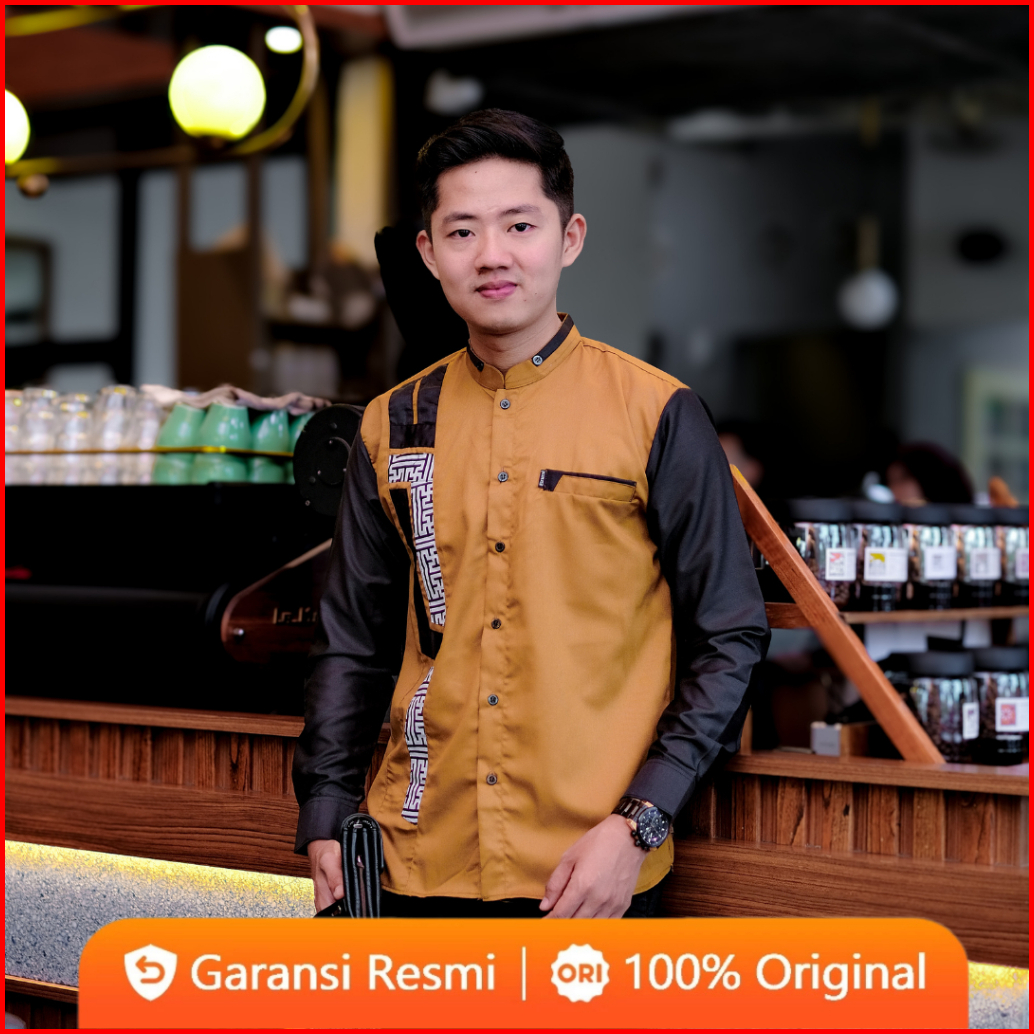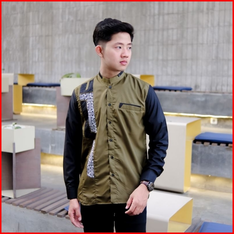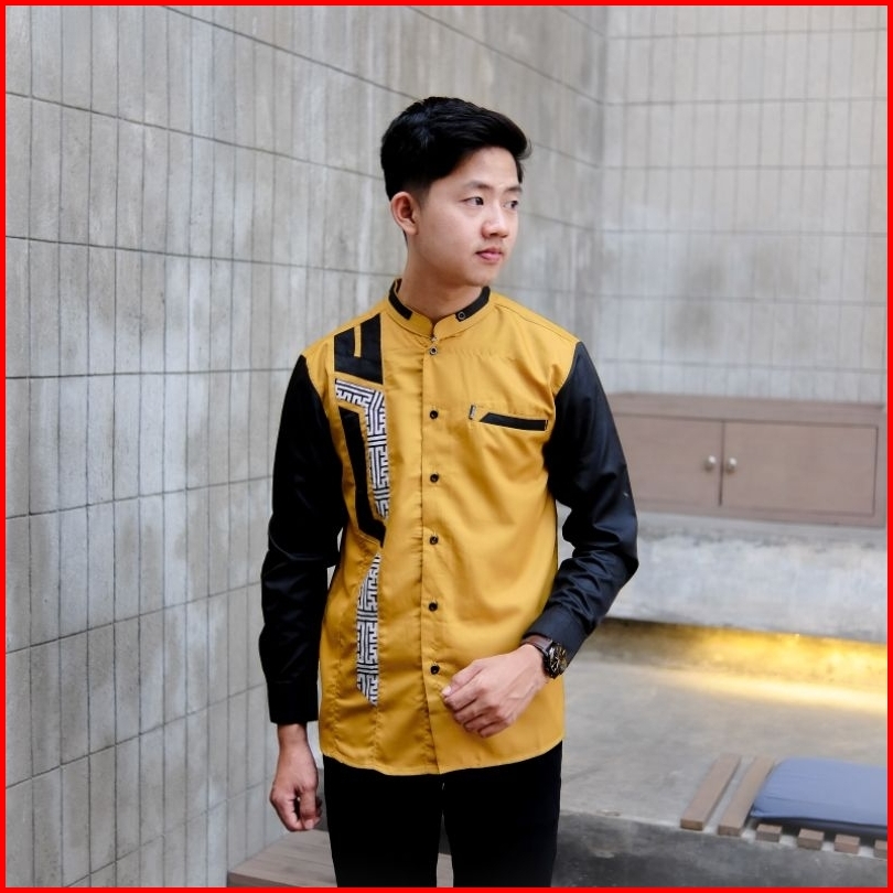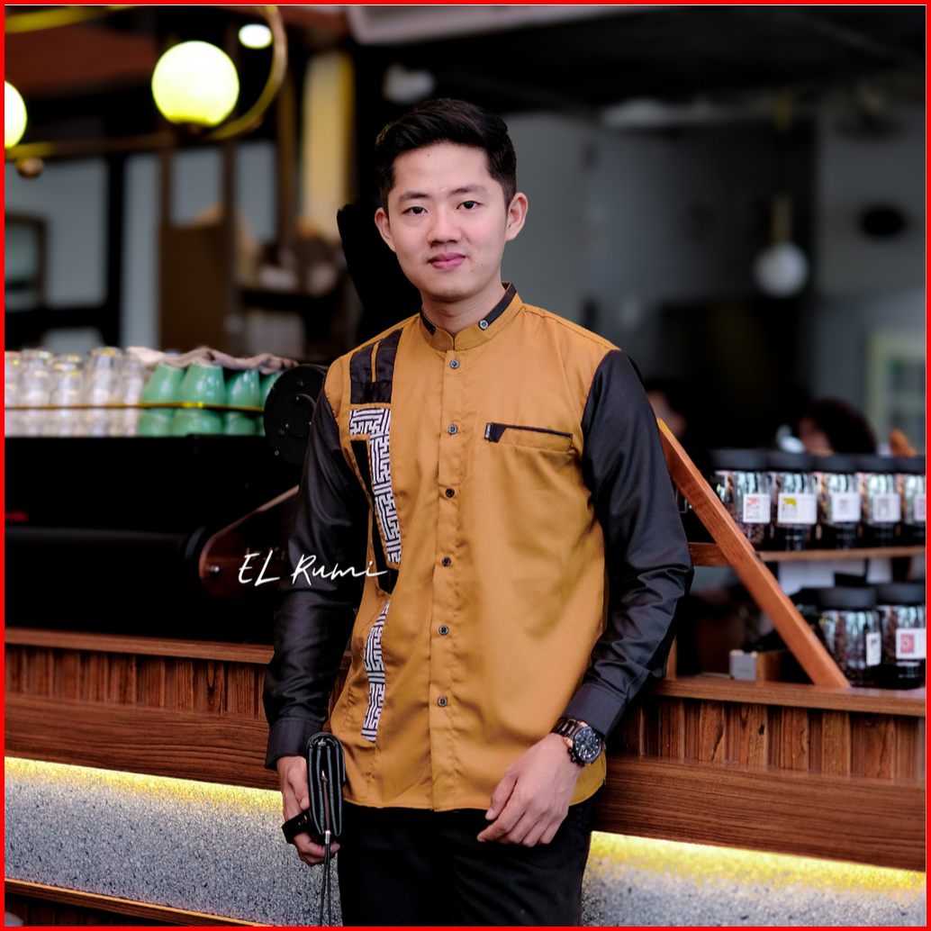 Baju Koko Pria Lengan Panjang Dewasa Slimfit Motif Sinergi Original Elrumi