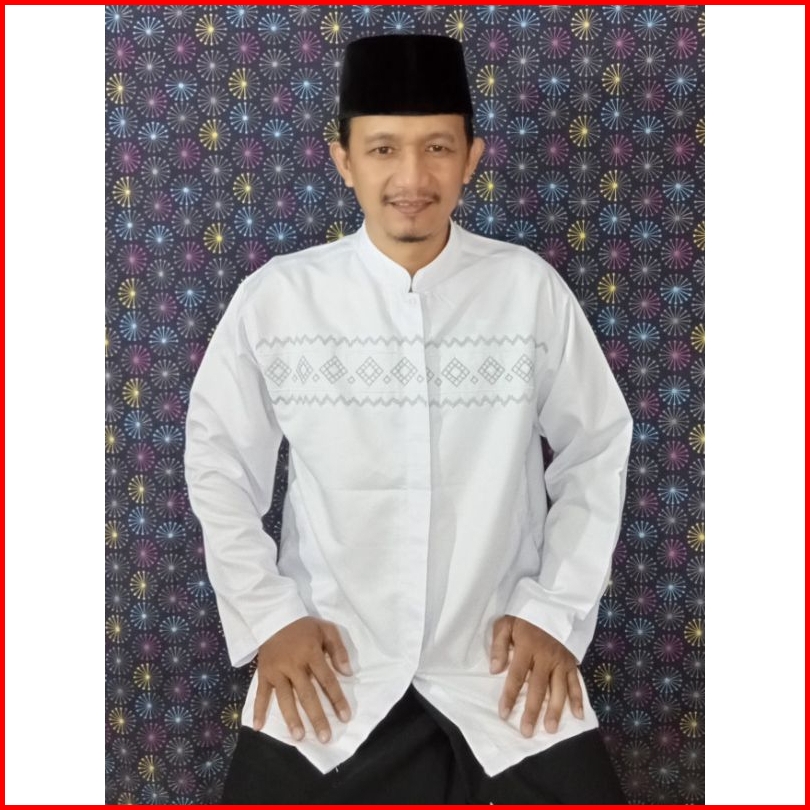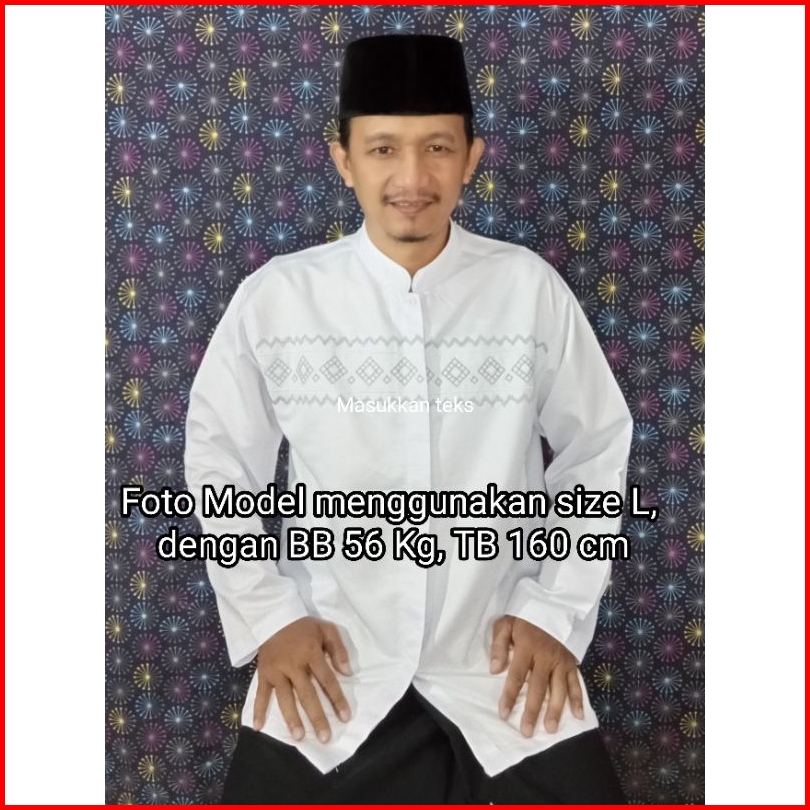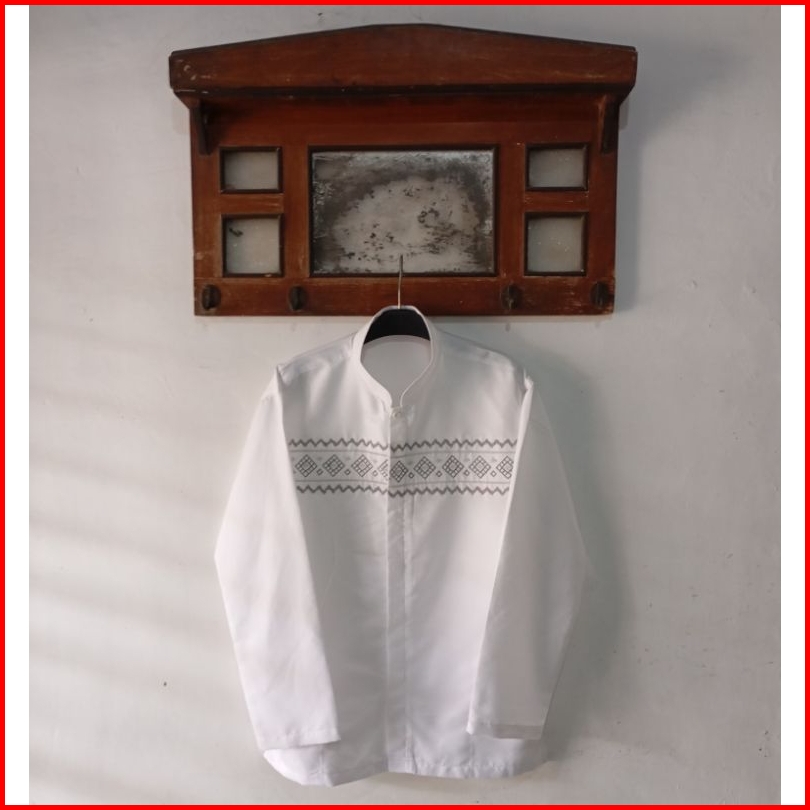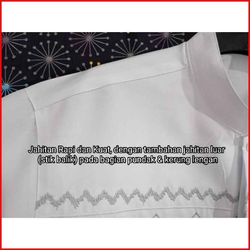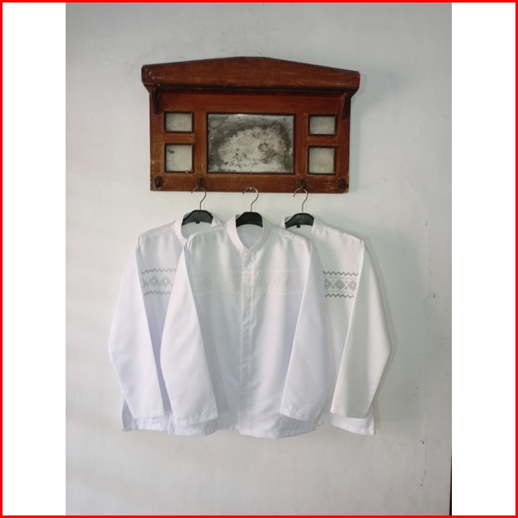 Pbj- Baju Koko Putih Bordir Micro Drill Katun Tebal Adem Lengan Panjang Dewasa M L Xl Xxl Bigsize