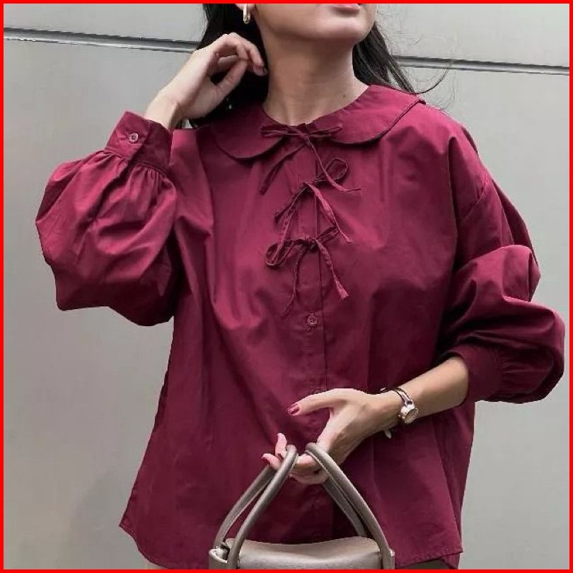 Orimoza Winter Blouse Lengan Balon Bahan Cotton Polimicro Tali