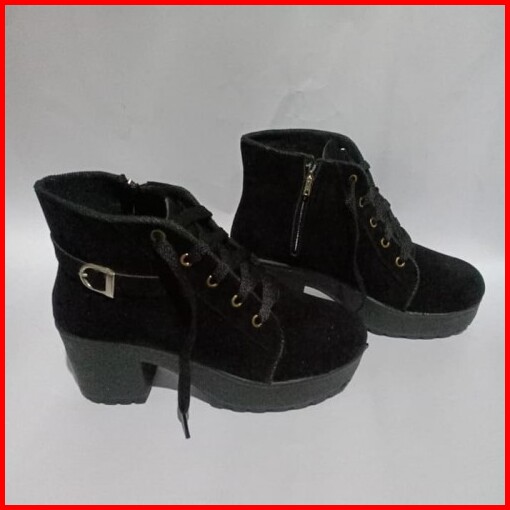 Sepatu Ankle Bood Buts Boots Booth Hitam Hak Heels Jenggel Tinggi Wanita Cewek Korean Style Murah