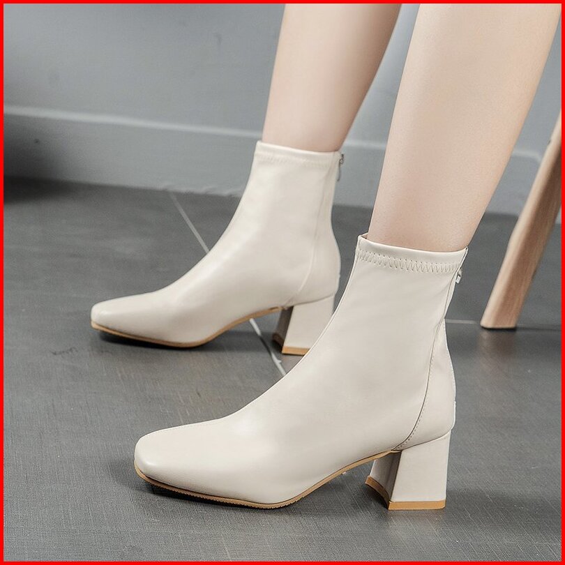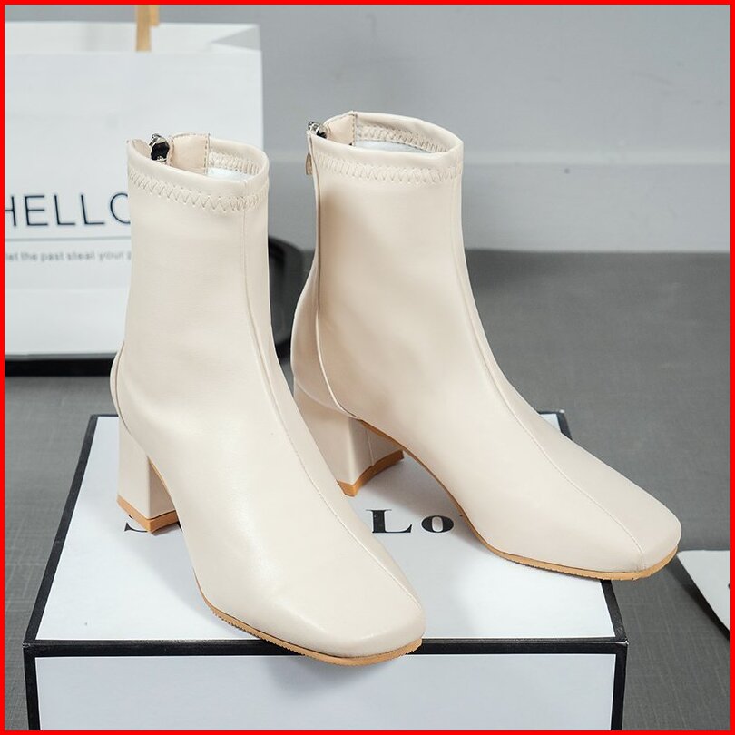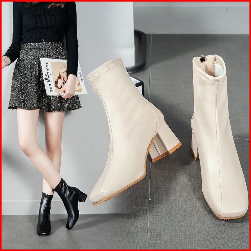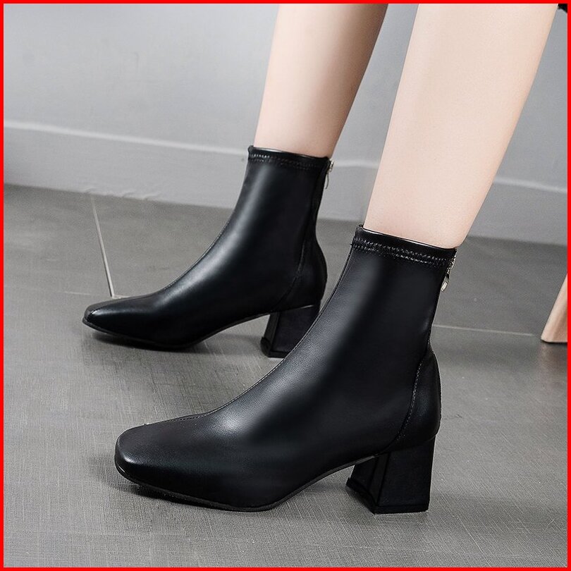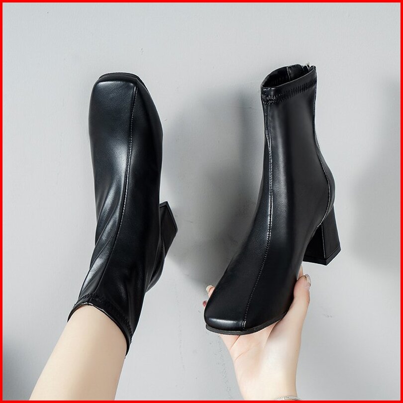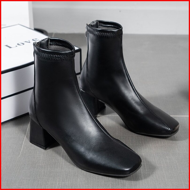 Sepatu Ankle Boots Heels Wanita Terbaru Import Korea Bot Hak Tahu Kulit Karet Murah Hitam Korean Style Black Booties - U