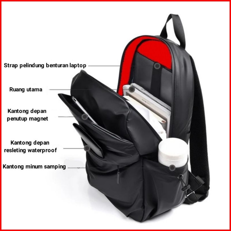 Ransel Ocha Waterproof High Quality - Backpack Laptop 16 Inch - Tas Hitam Pria Wanita