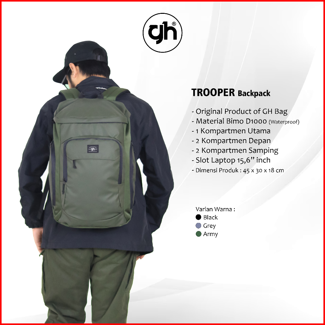 Gh-bag Trooper Backpack Tas Sekolah Kuliah Kerja Travelling Tas Ransel Laptop 15 6 Inch Waterproof