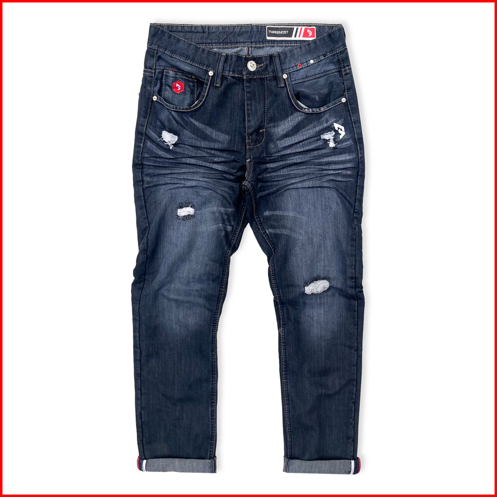 Celana Jeans Panjang Sobek Pria Wisker Slim Straight Ripped Jeans Ringkel Premium