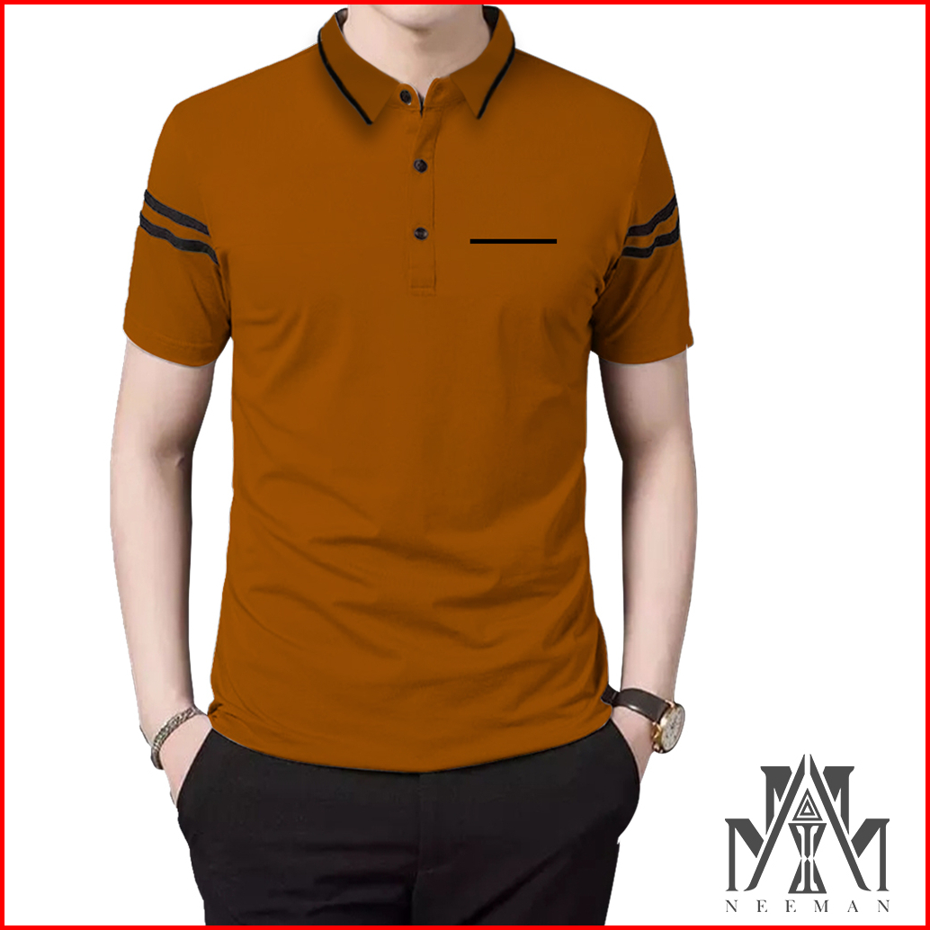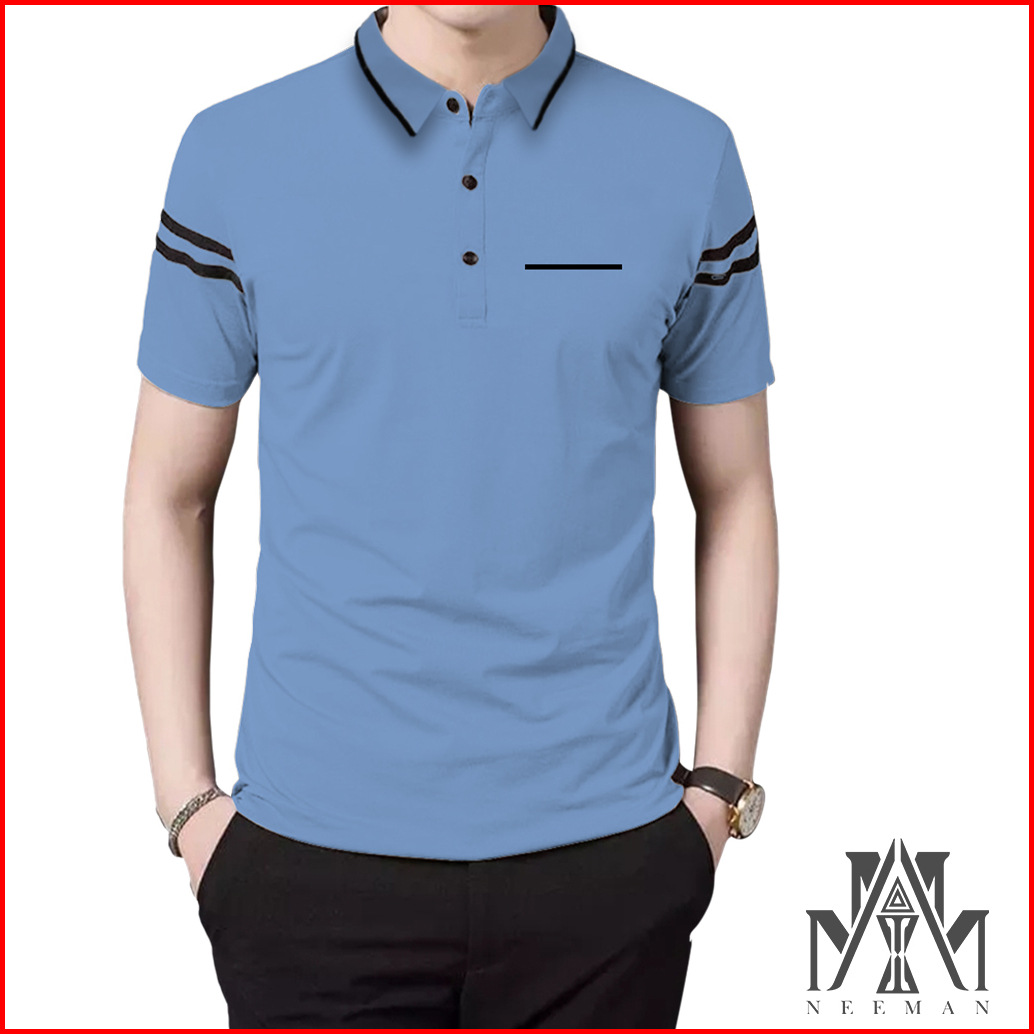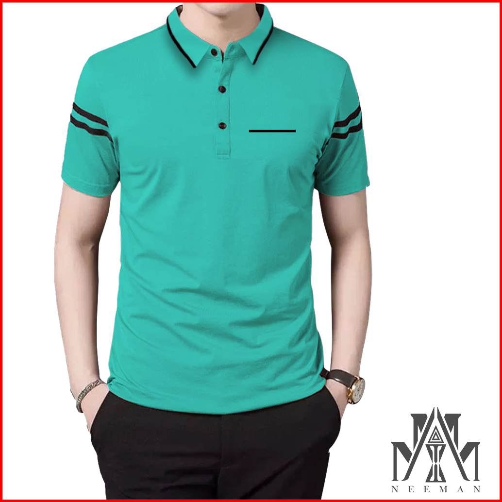 Kaos Kerah Daun Saku Bergaris Pendek