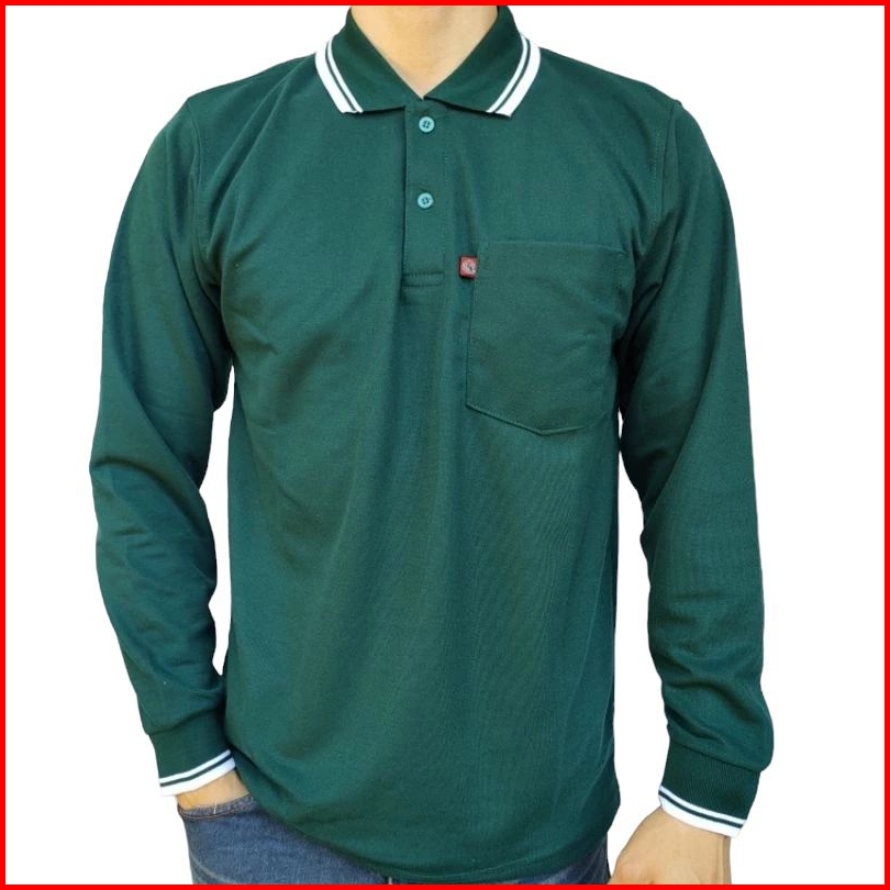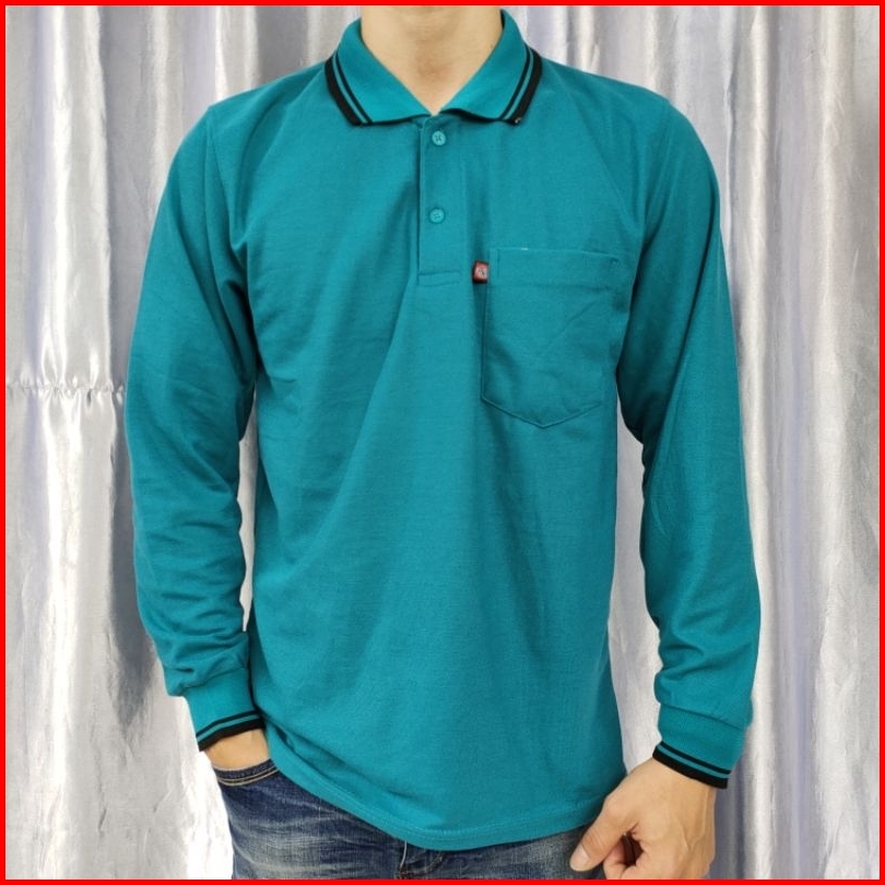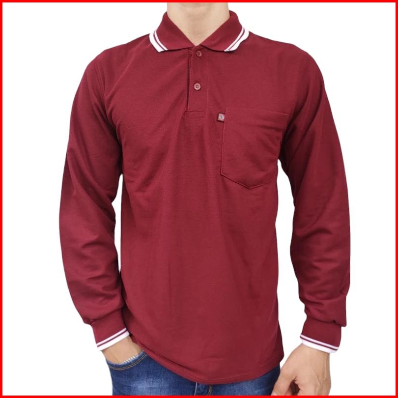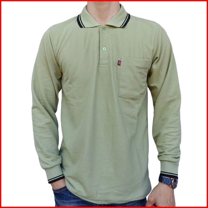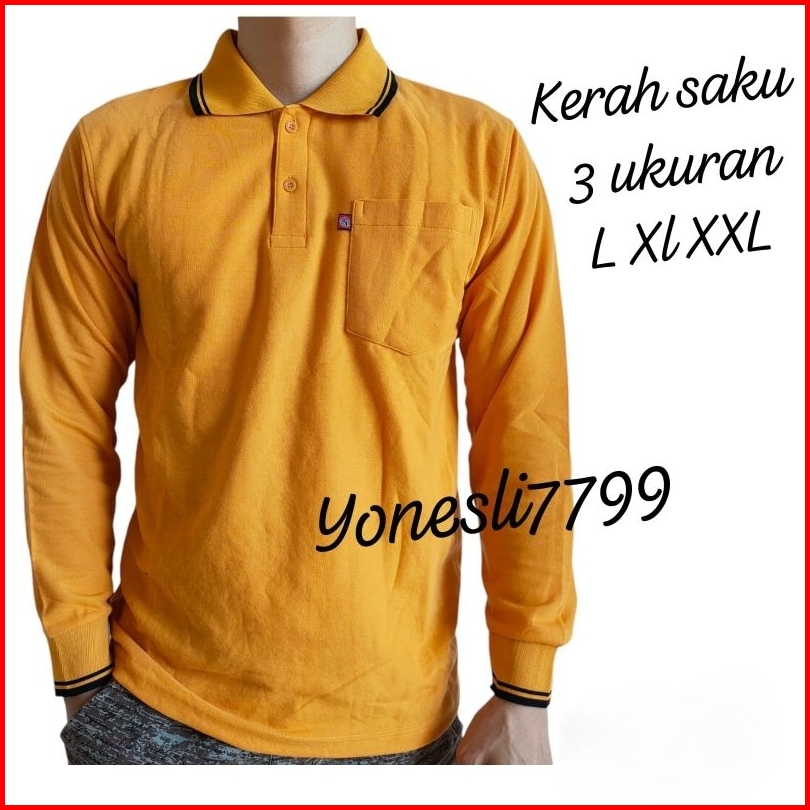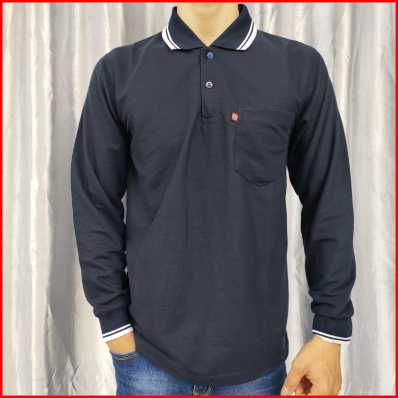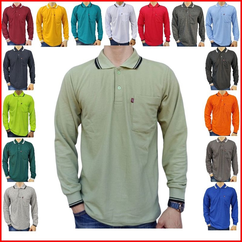 Kaos Krah Pria Dewasa Polo Shirt Saku Noveli Lengan Panjang Uk L Xl Xxl
