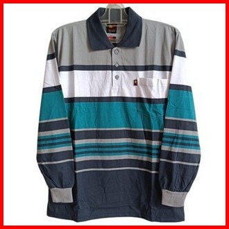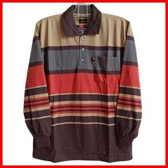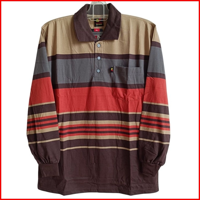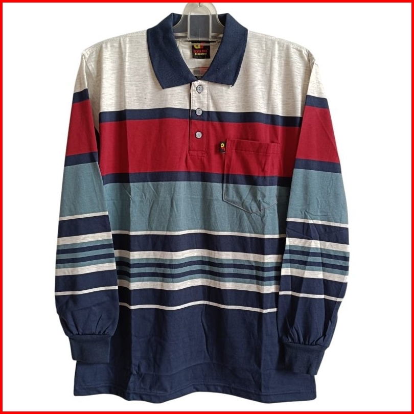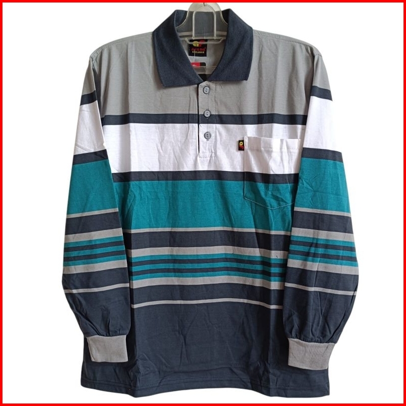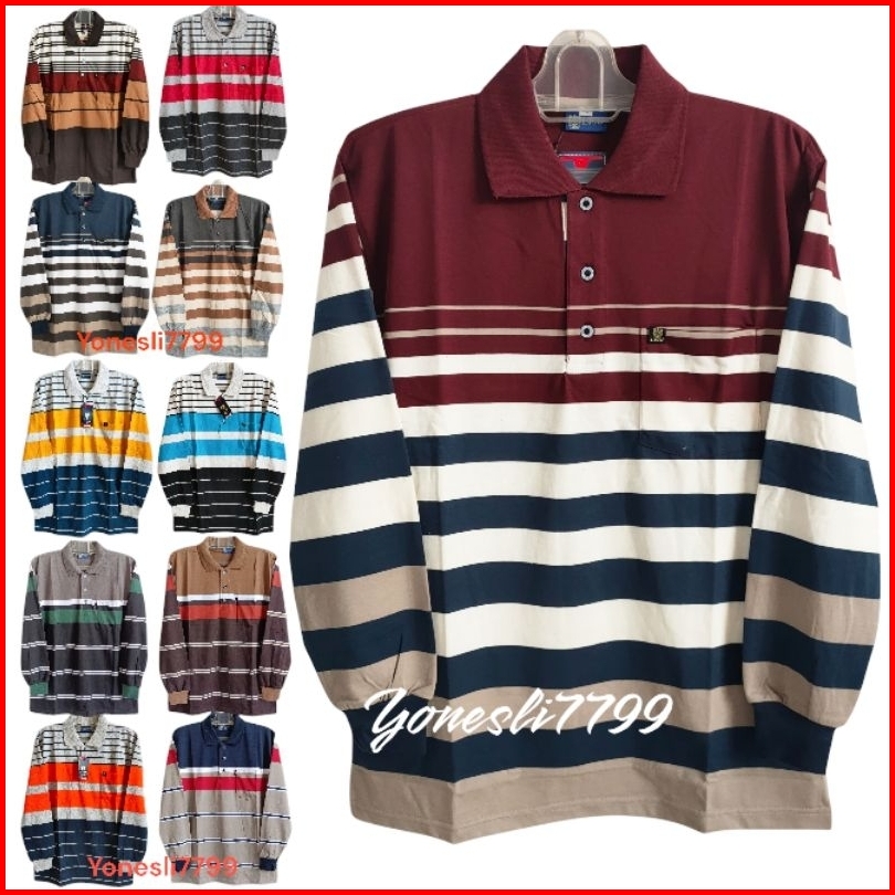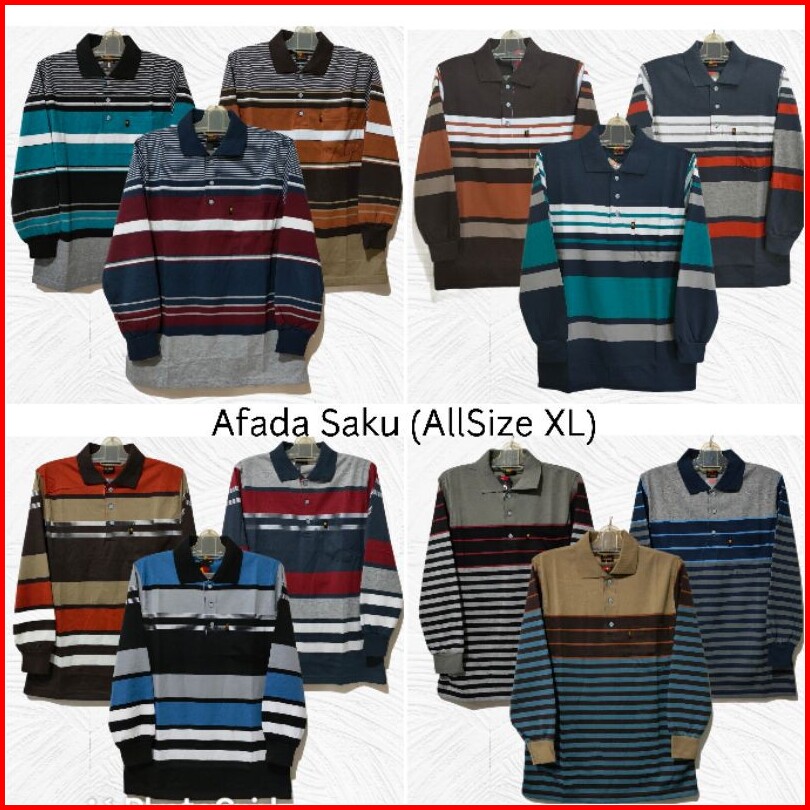 Kaos Kerah Pria Dewasa Motif Salur Afada Lengan Panjang Karet Allsize Xl