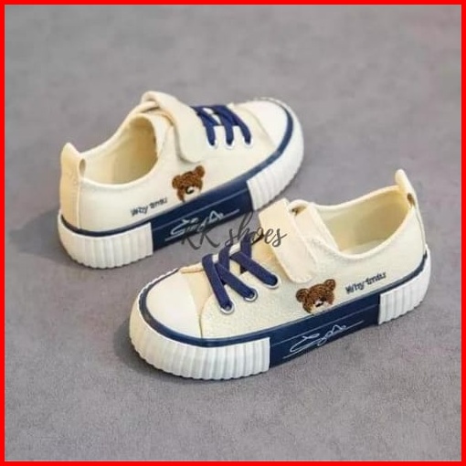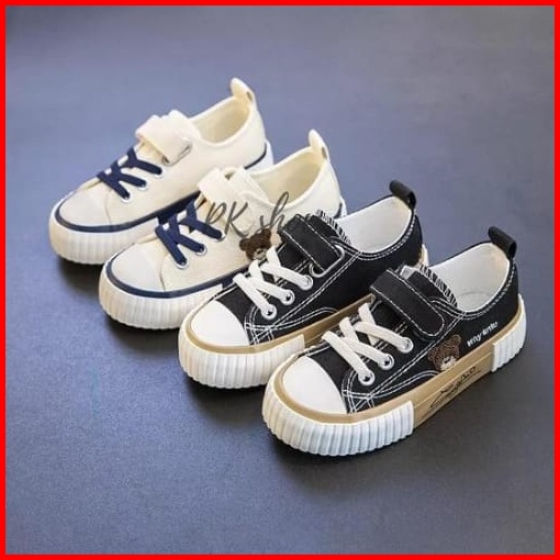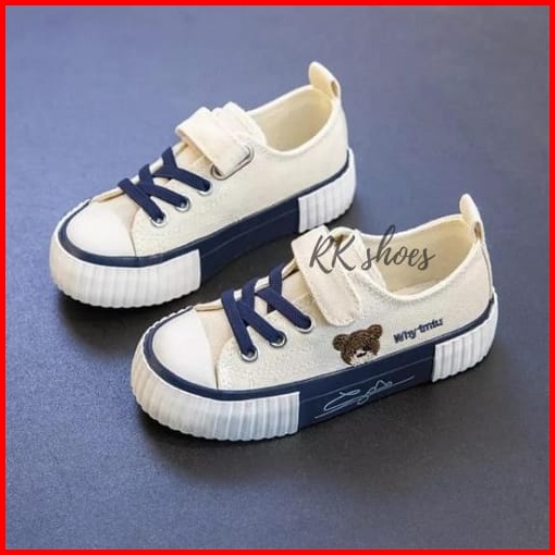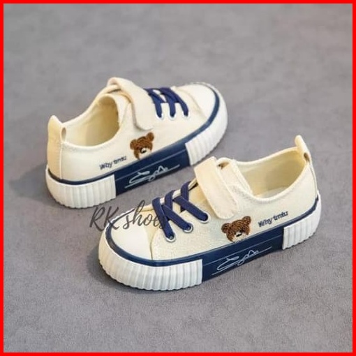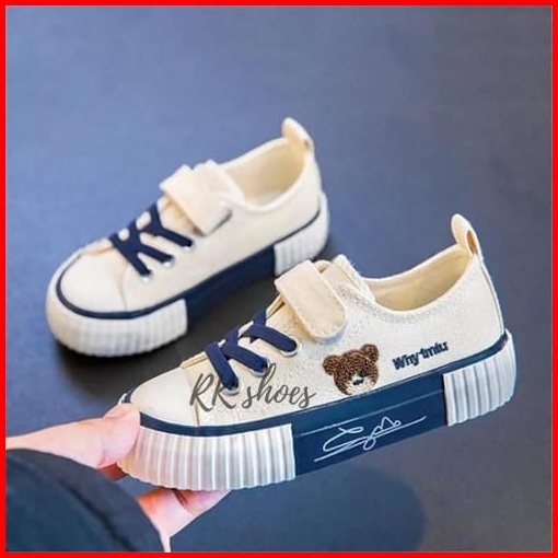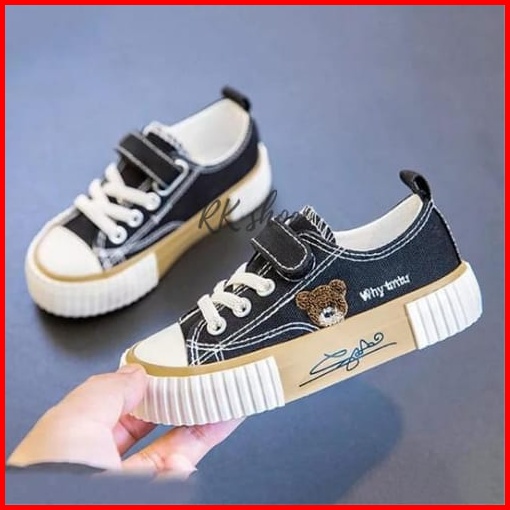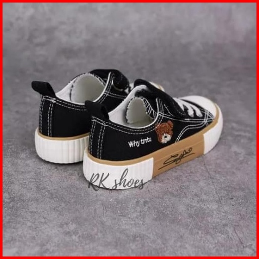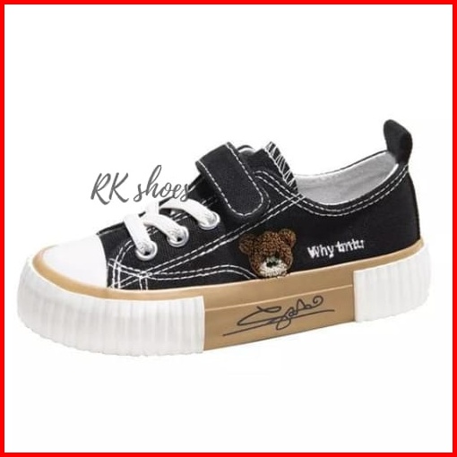 Rk Kids - Sepatu Kanvas Kartun Anak Anak Beruang Kecil Pola Bordir Hitam Beige Td-01