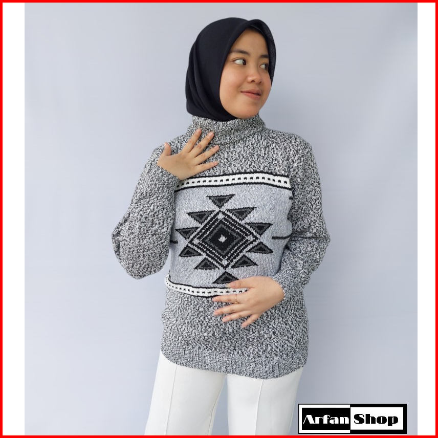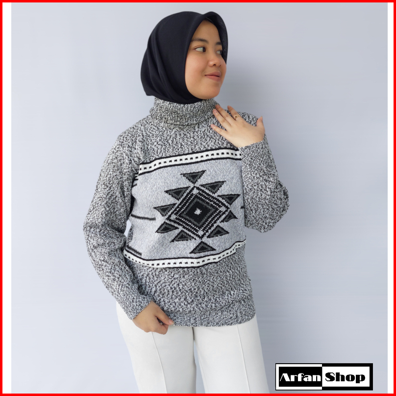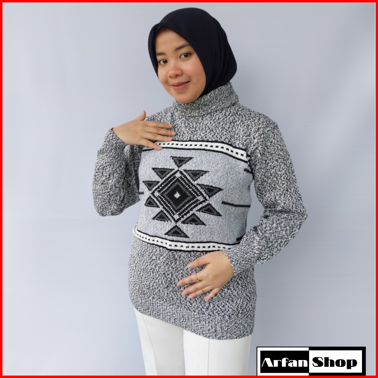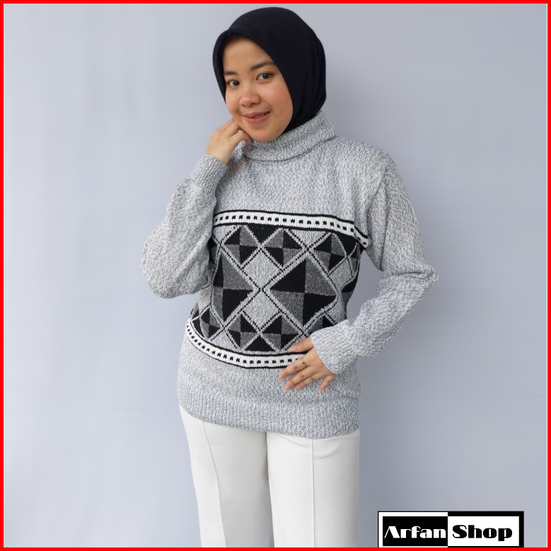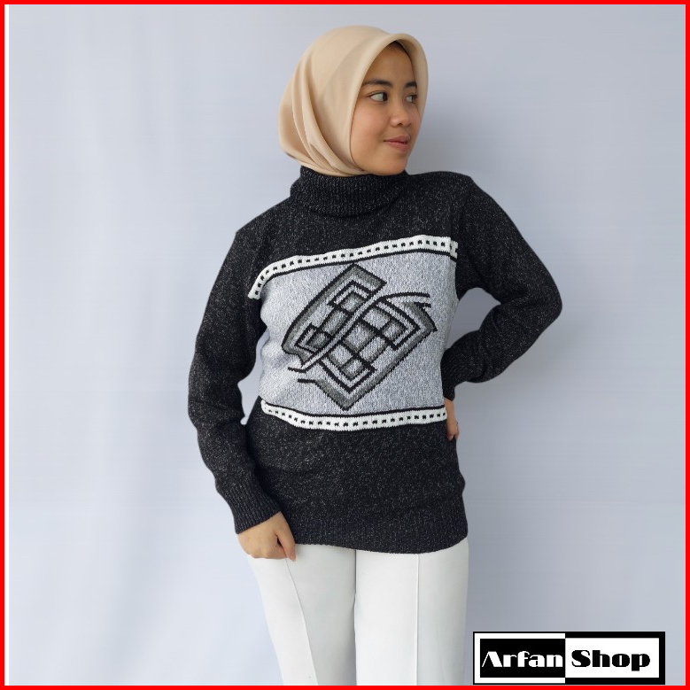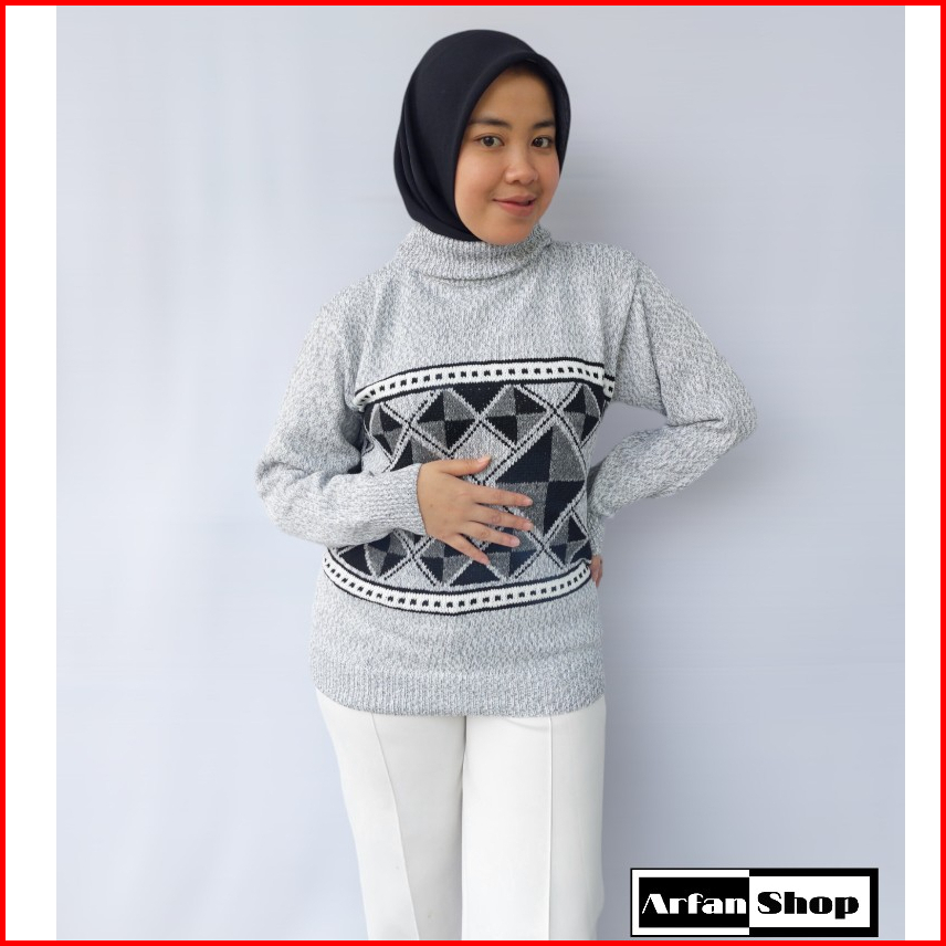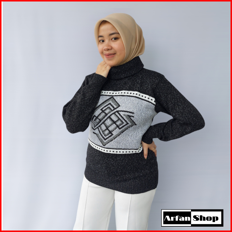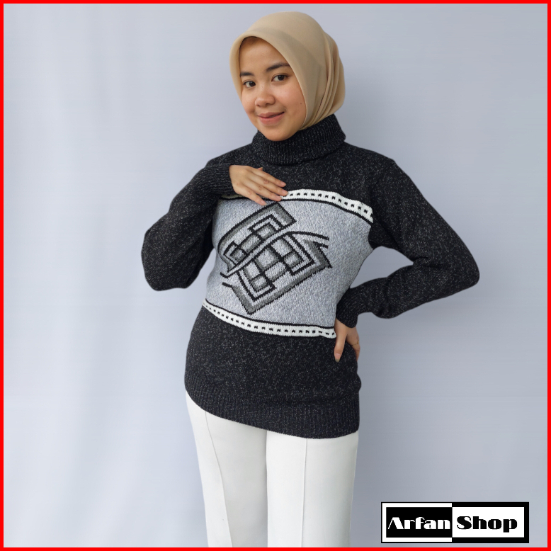 Sweater Rajut Leher Tinggi Tebal Switer Knit Turtleneck Atasan Rajutan Baju Hangat Pria Wanita