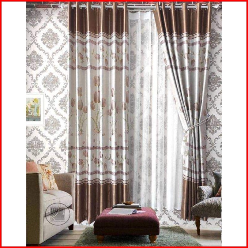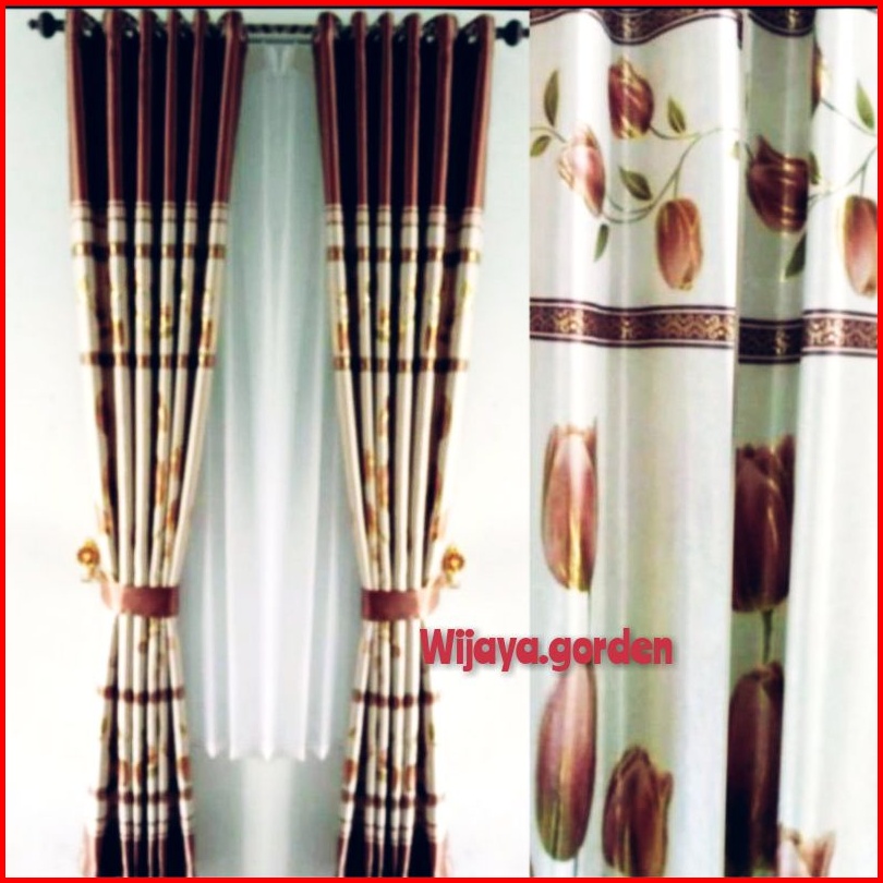 Tirai Gorden Blackout Import Jendela 1minimalis Tebal Terbaru Gorden 12 Ring Motiv Bunga Tulip