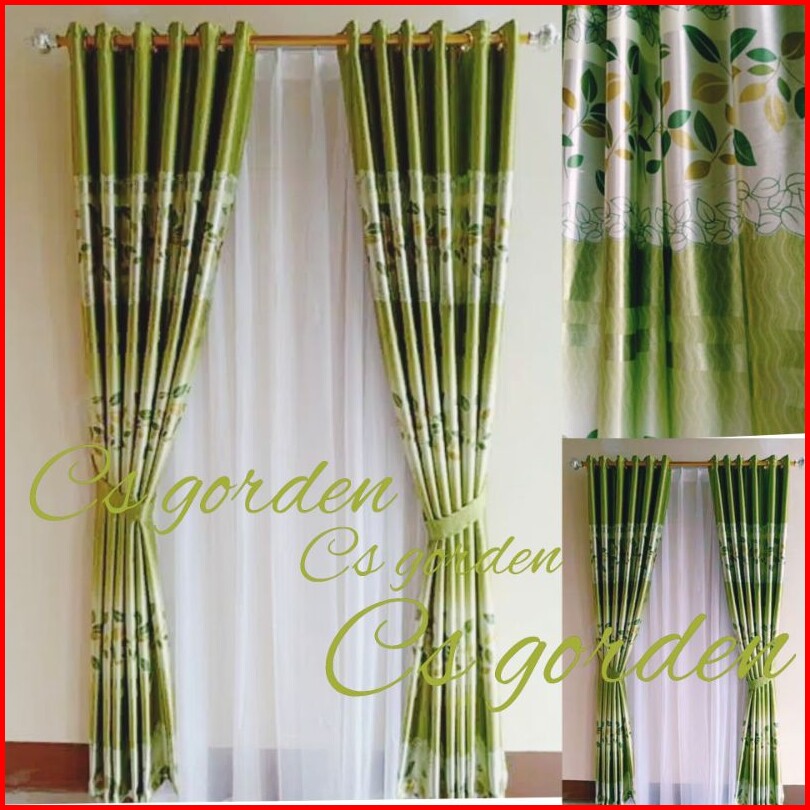 Gorden Korden Jendela Pintu Perinting Daun Hijau Model Smokring Mengkilat Bahan Import