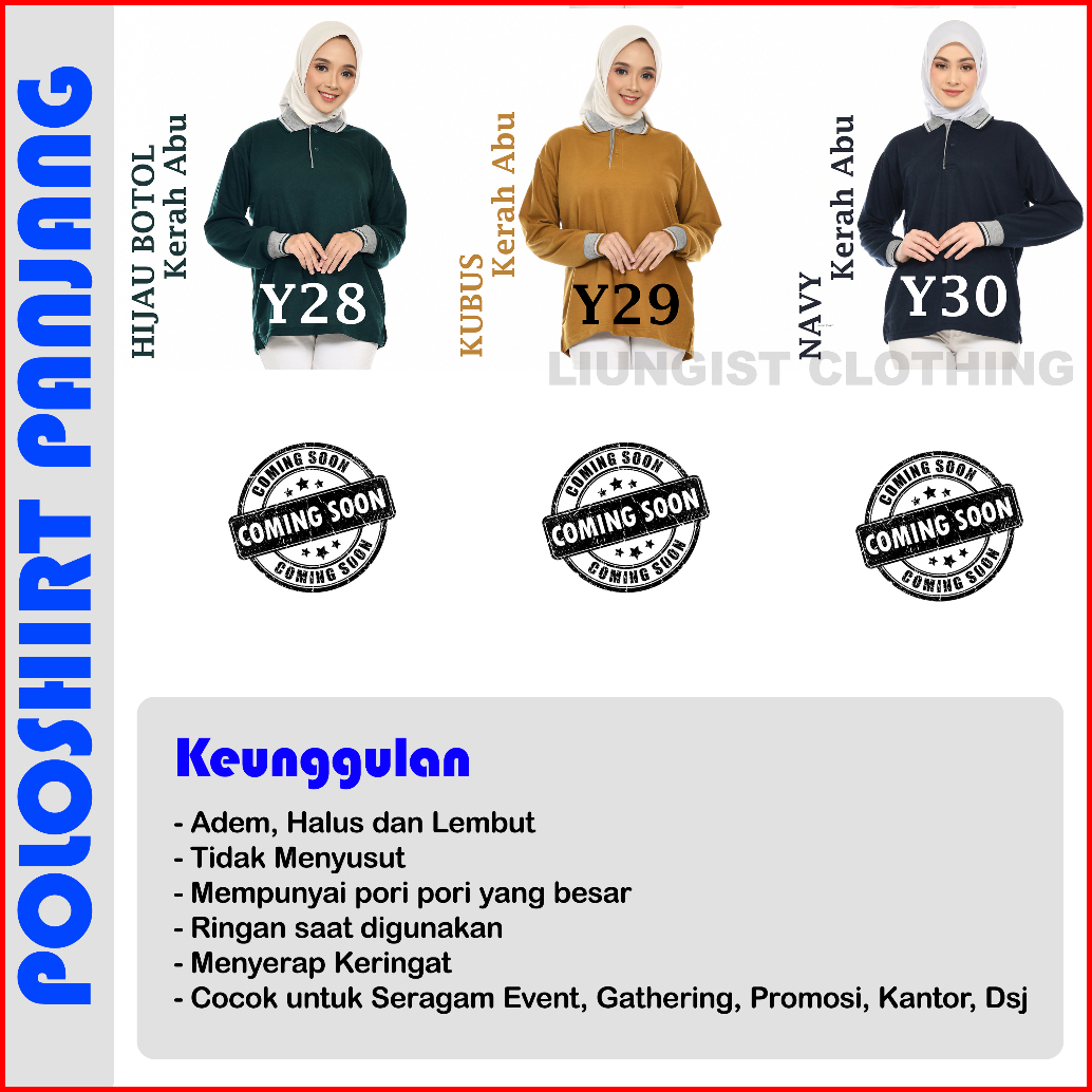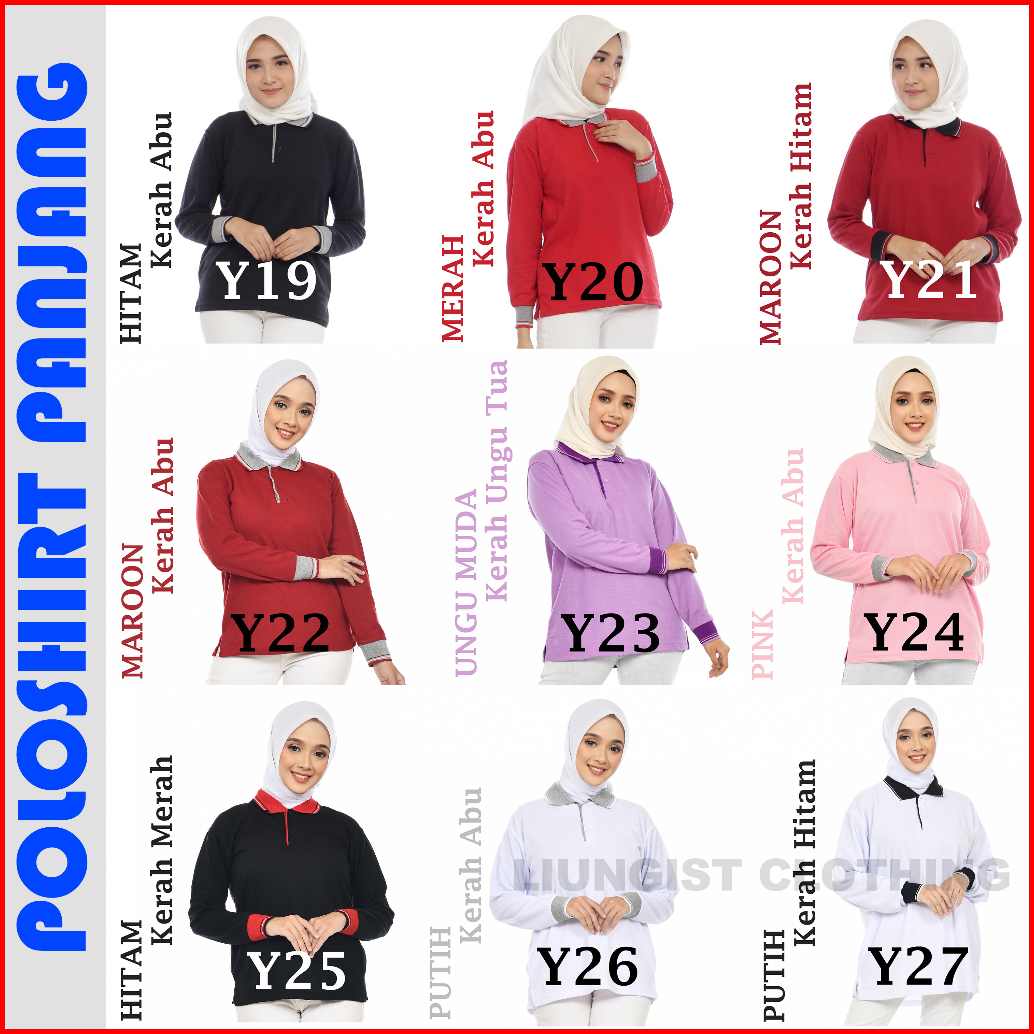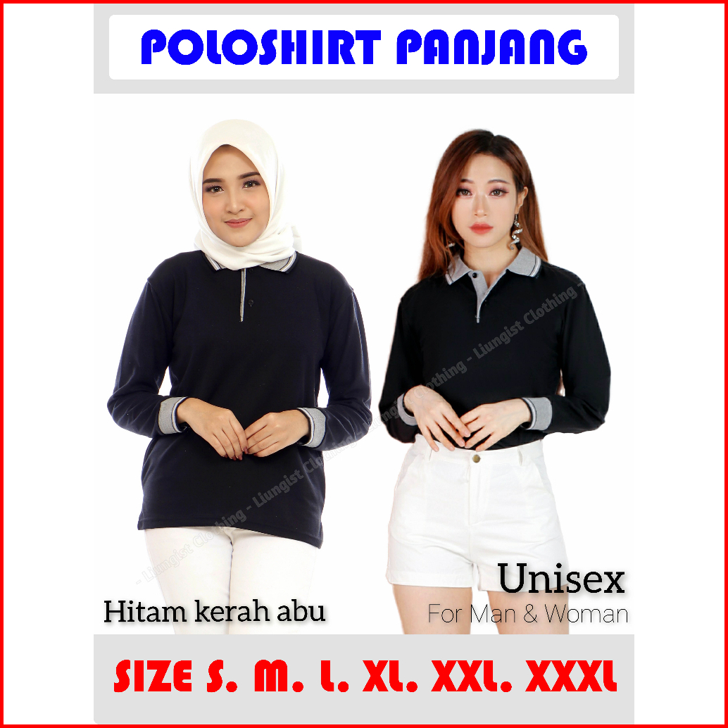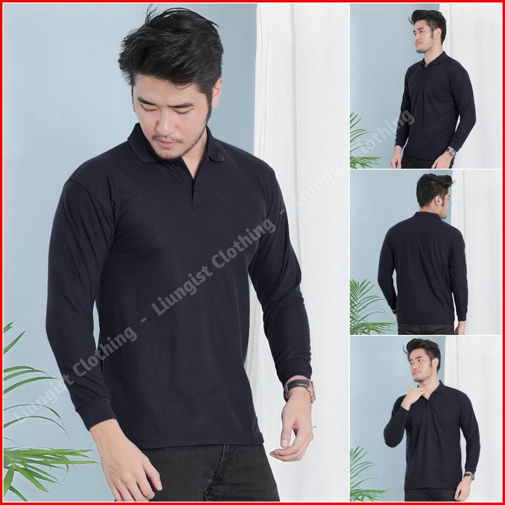 Kaos Polo Panjang Unisex Hitam Kaos Kerah Poloshirt Polo Shirt Panjang