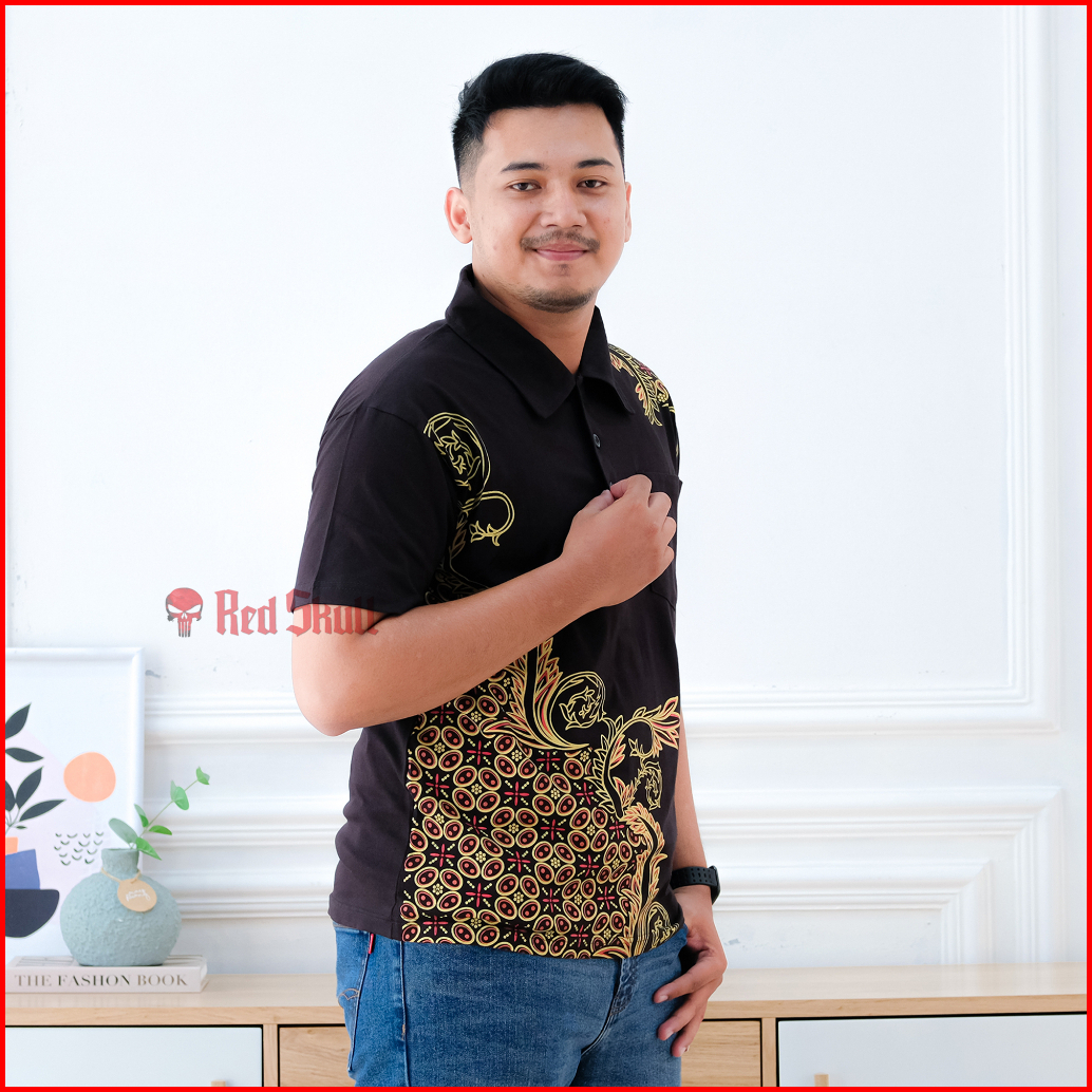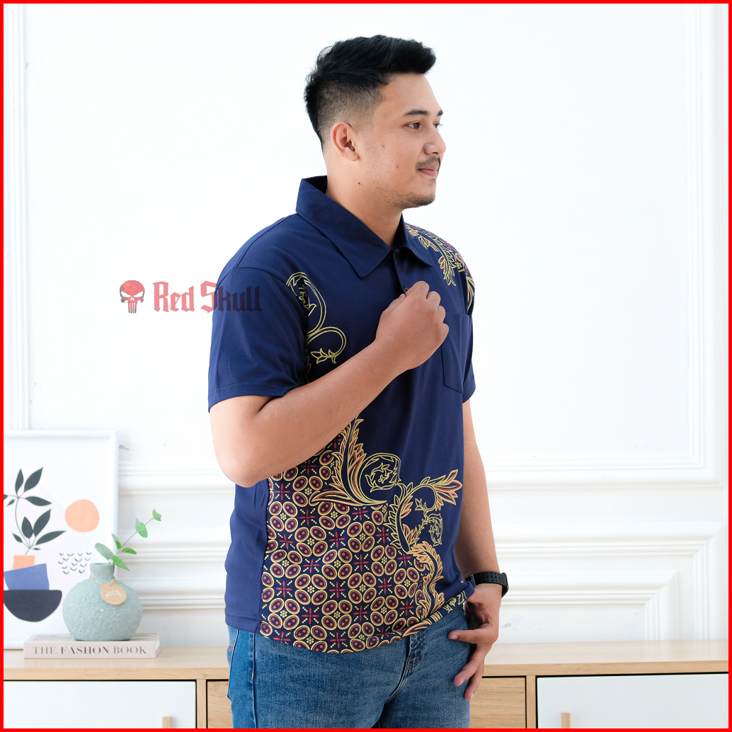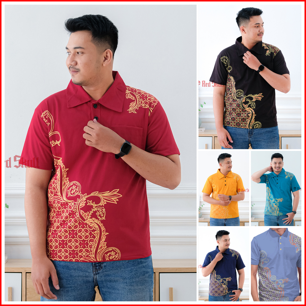 Red Skull Kaos Kerah Polo Batik Kawung Bulat Samping Bahan Katun Ada Saku