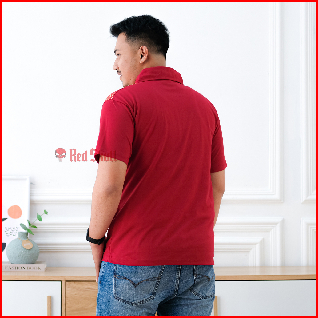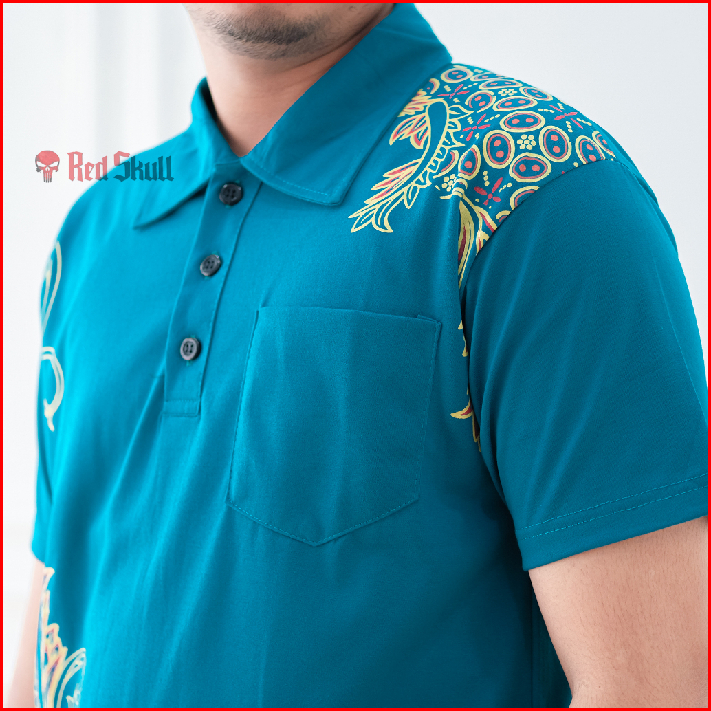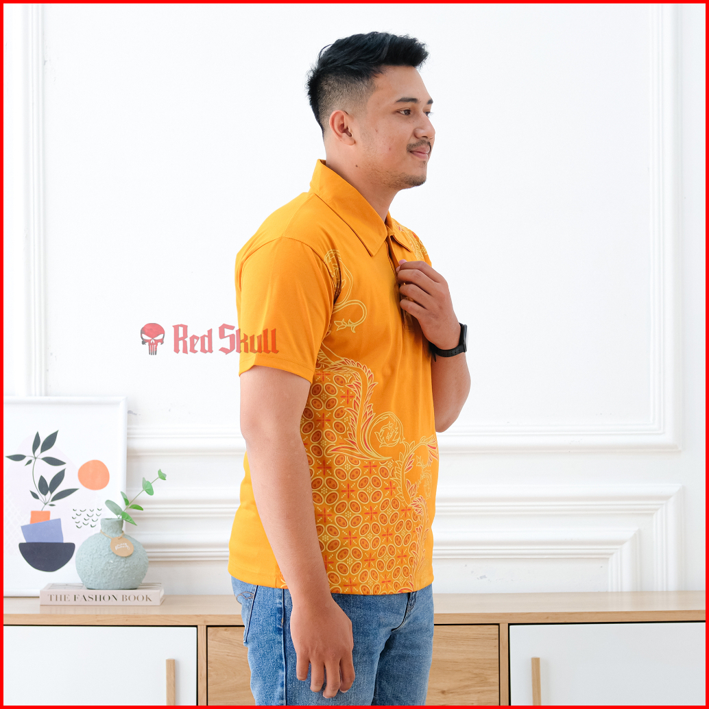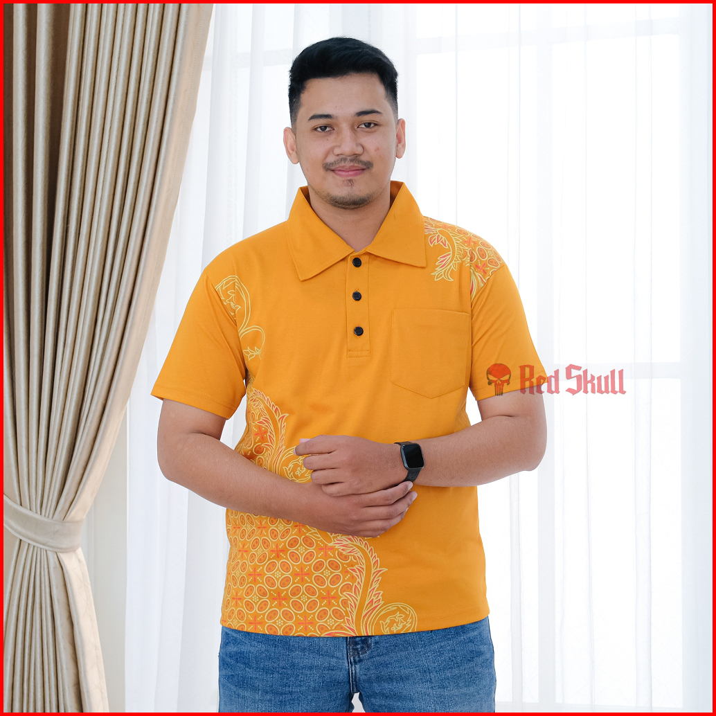 Red Skull Kaos Kerah Polo Batik Kawung Bulat Samping Bahan Katun Ada Saku