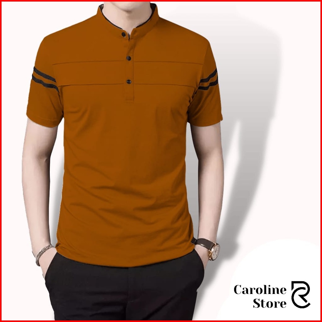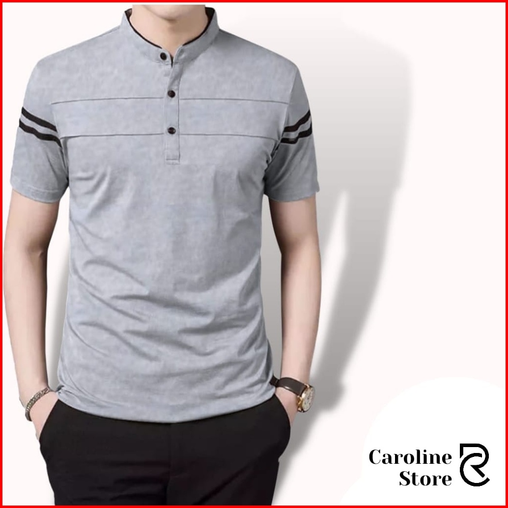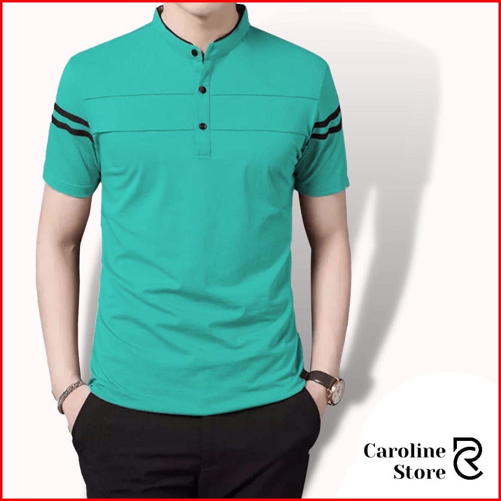 Cuci Gudang Kaos Pria Kerah Shanghai Lengan Garis Pendek