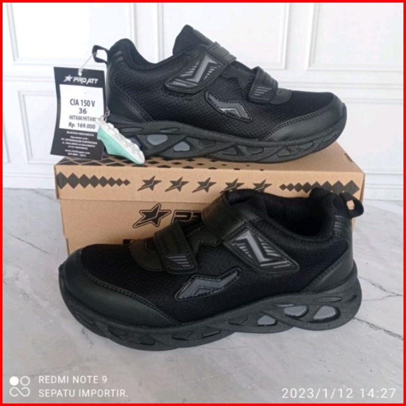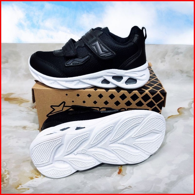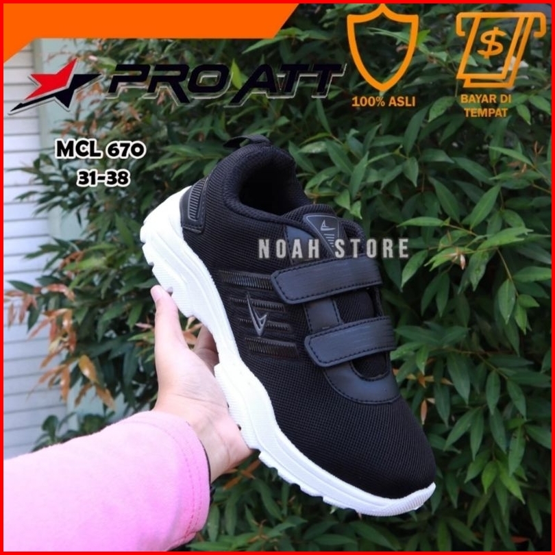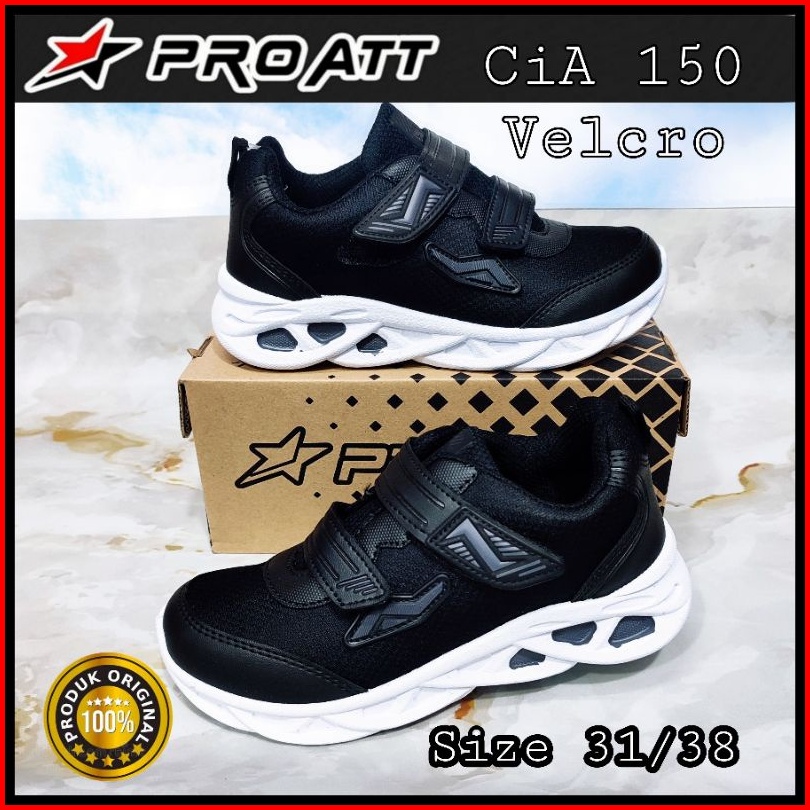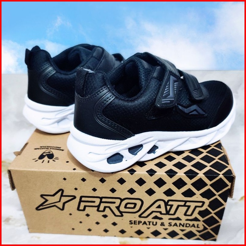 Pro Att Sepatu Sneakers Sekolah Anak Kecil Tanggung Tren Kekinian Cowok Cewek Hitam Putih Velcro Perekat Tempel Size 30-