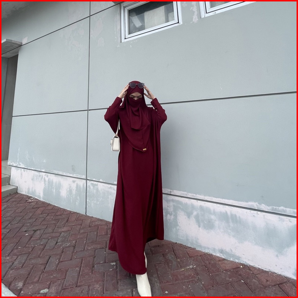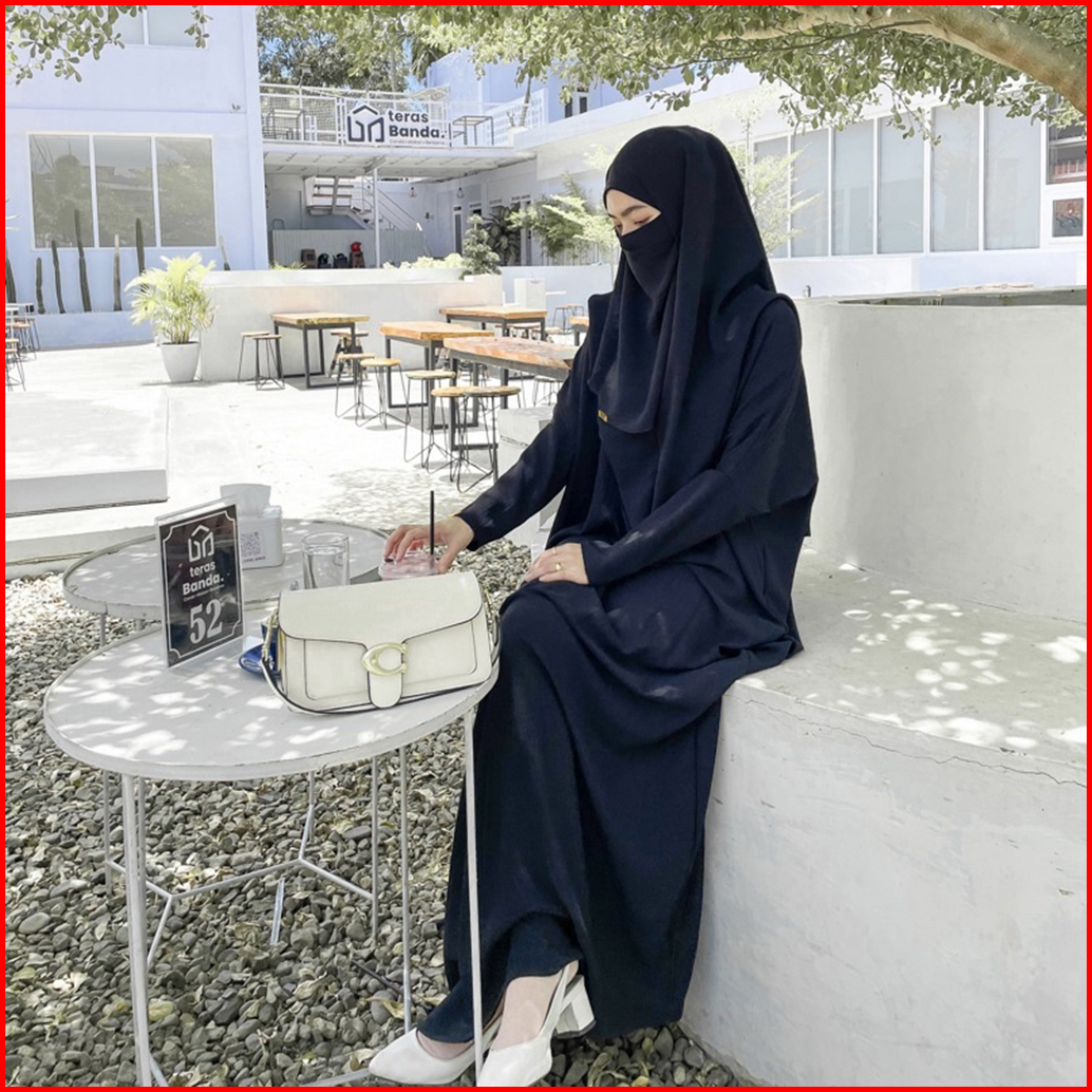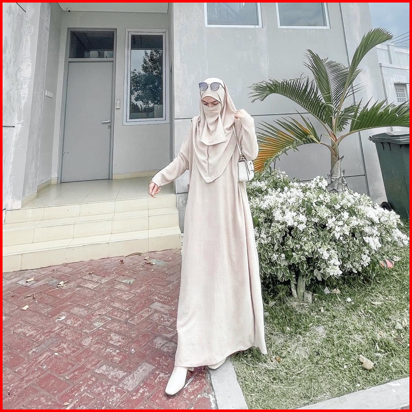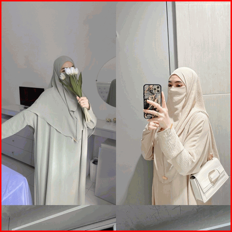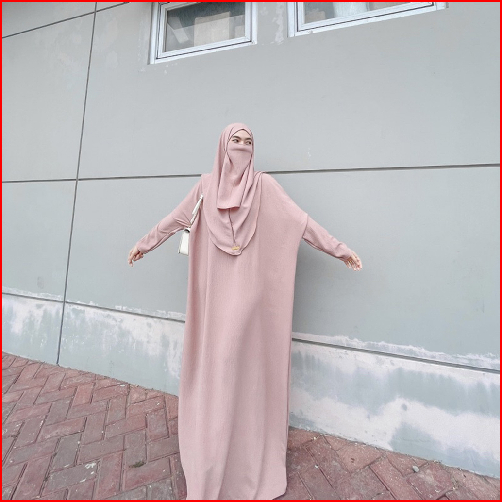 Abaya Kaftan Set Hijab 3 In 1 Cadar Muslimah Cringkle Airflow