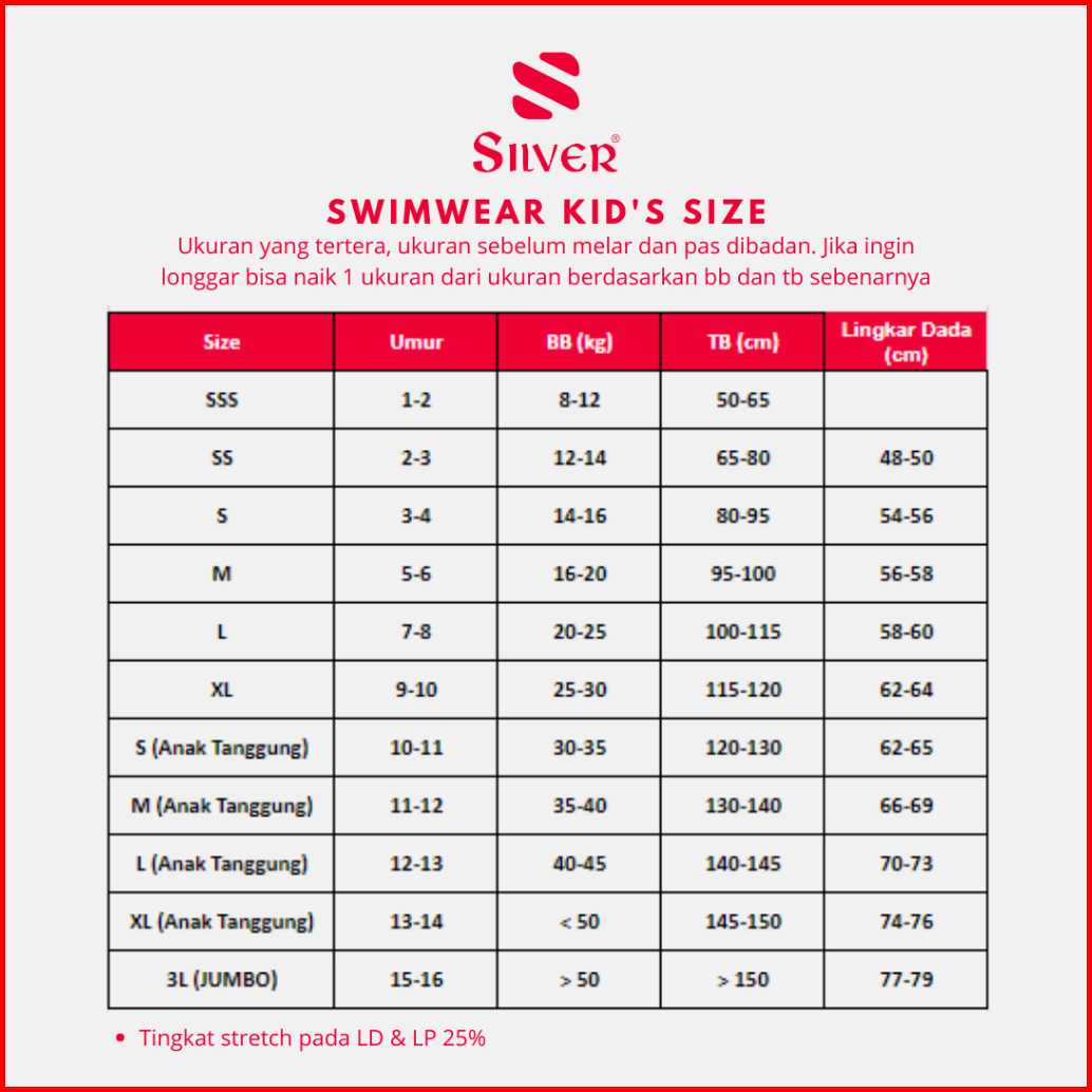 S (3-4 Thn), M (5-6 Thn), L (7-8 Thn), XL (9-10 Thn), S (10-11 Thn), M (11-12 Thn), L (12-13 Thn), 3L (Jumbo Size)