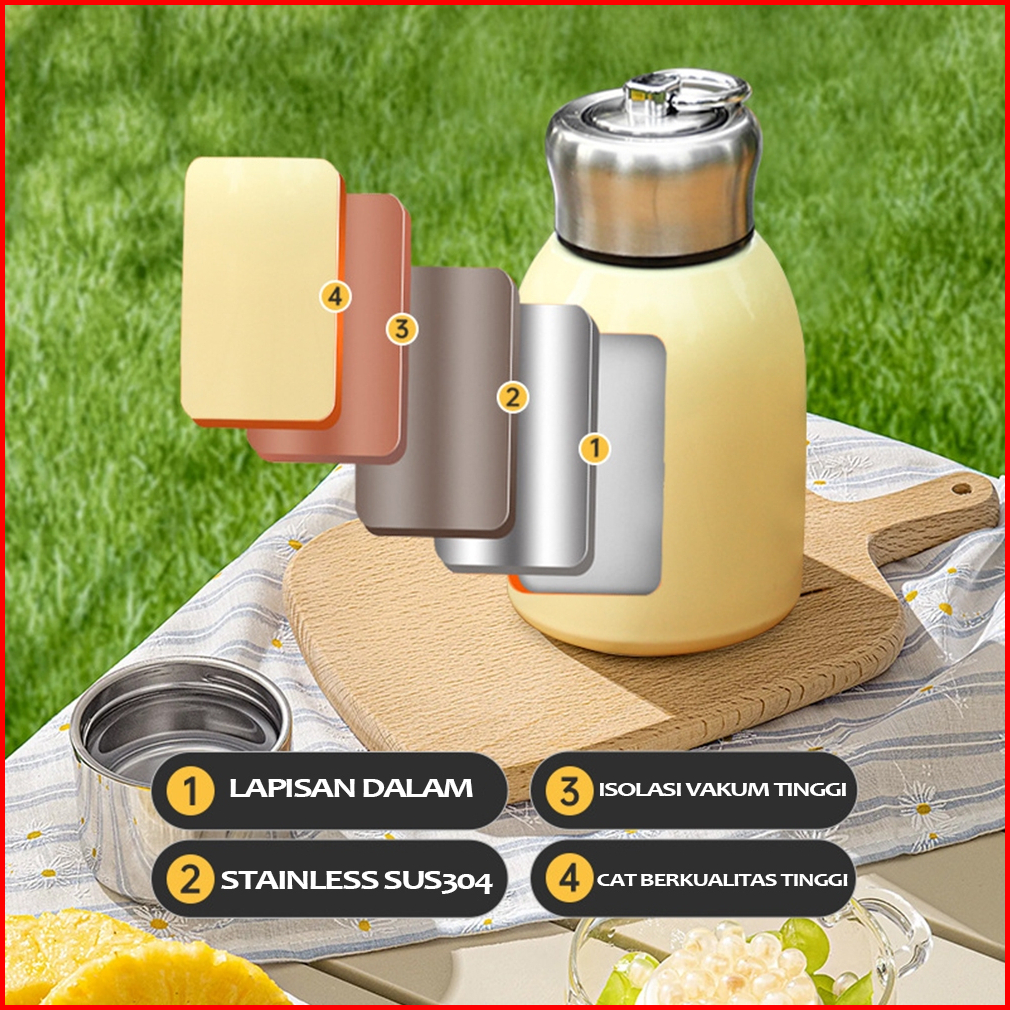 Tumbler Handle Mini Thermos Vakuum Insulated Hot And Cold 280 Ml Tahan Panas Dingin Botol Gemoy