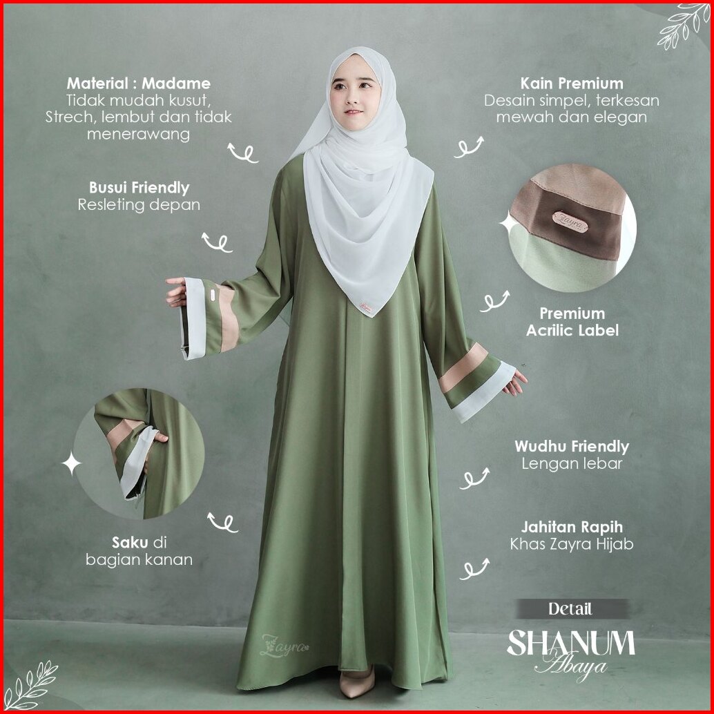 Zayra Hijab Shanum Abaya Gamis Wanita Ukhti Set Hijab Daily Syari Simpel Premium Lebaran Jumbo Mewah Elegan Terbaru 2025