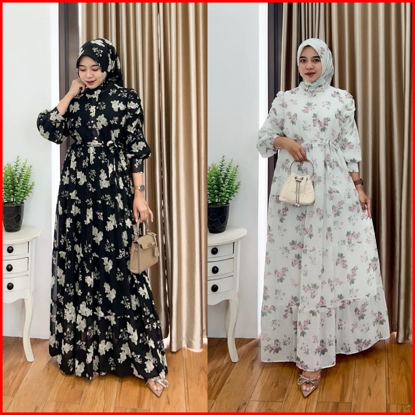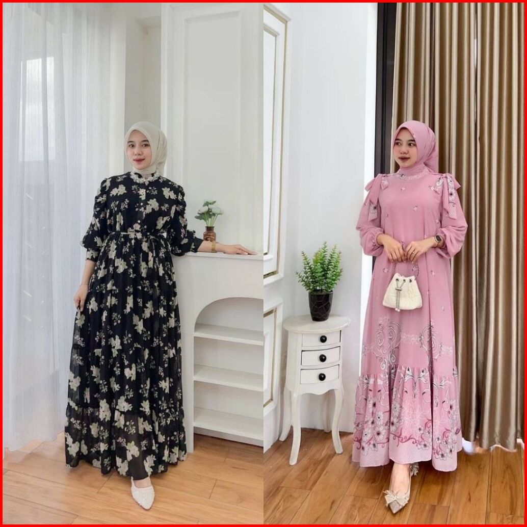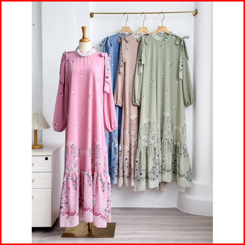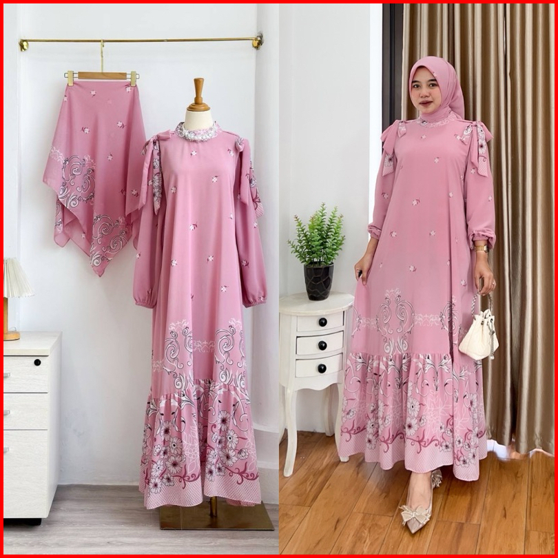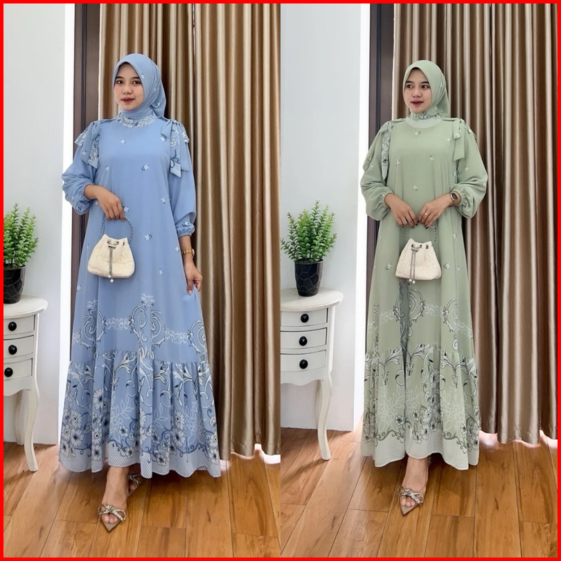 Laluna Azellia Dress Ceruty Muslim Set Hijab Gamis Etnic Elegan
