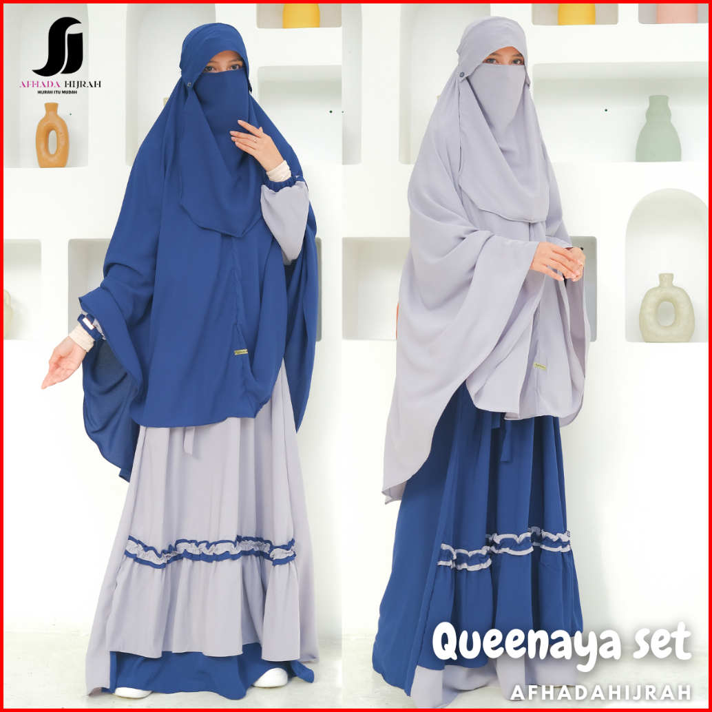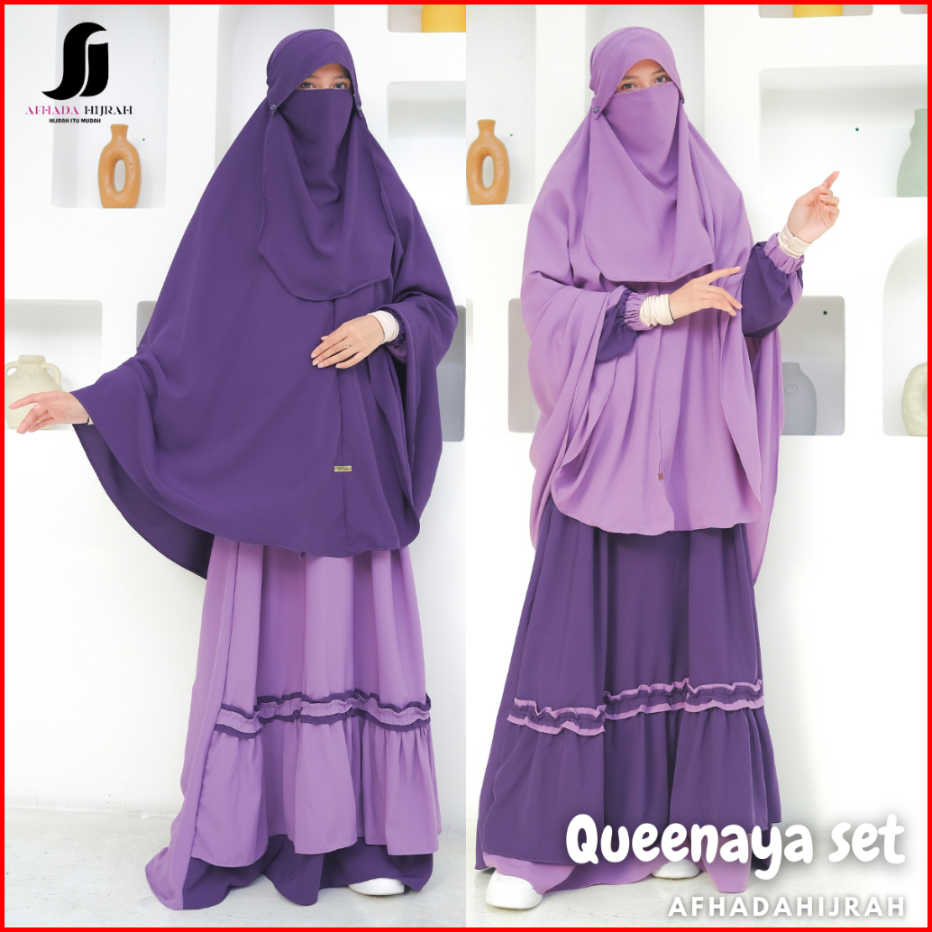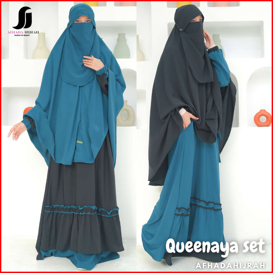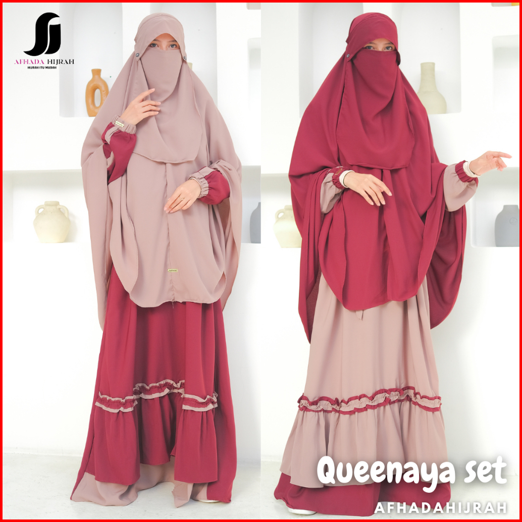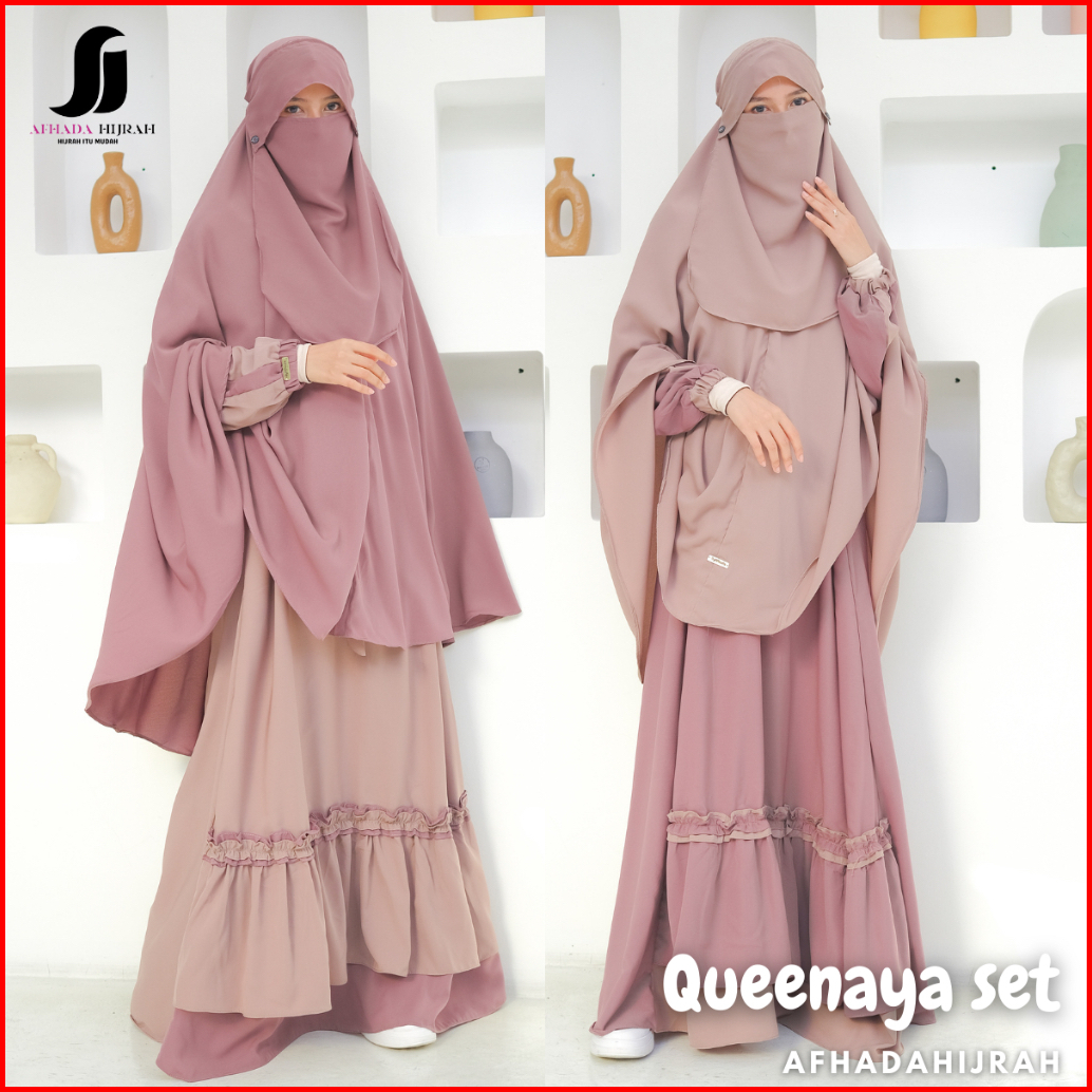 Afhadahijrah - Gamis Syari Cadar Poni Queenaya Wolfis Fortaleza Baju Set Hijab Free Niqab Terbaru