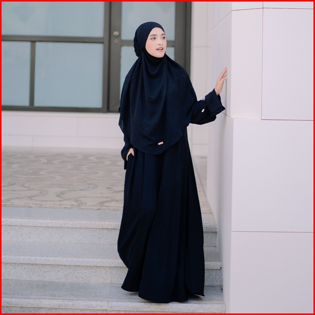 Lozy Hijab - Haiba Abaya Set Abaya Set French Khimar Haji Dan Umrah Bahan Crinkle Premium