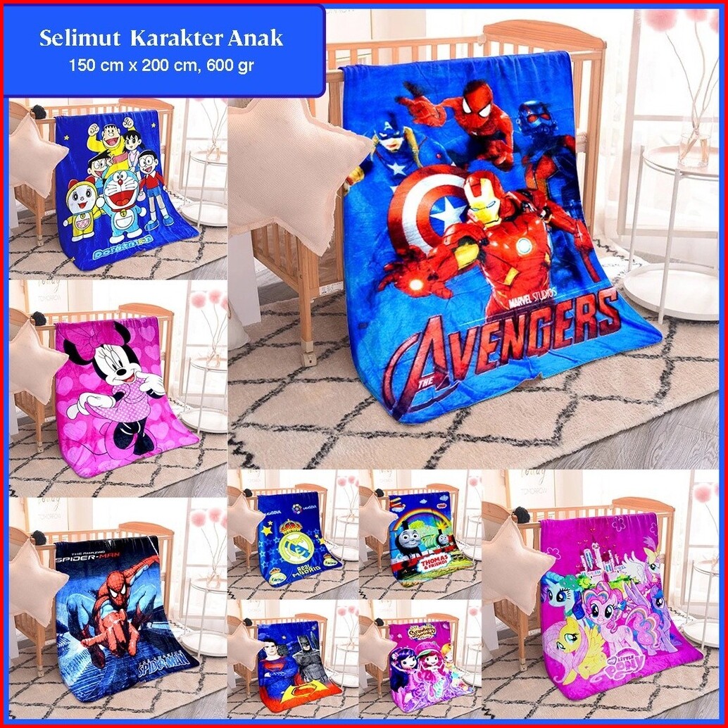 Selimut Karakter Anak Tebal Lembut 150x200 Cm List Motif Lucu 600 Gr