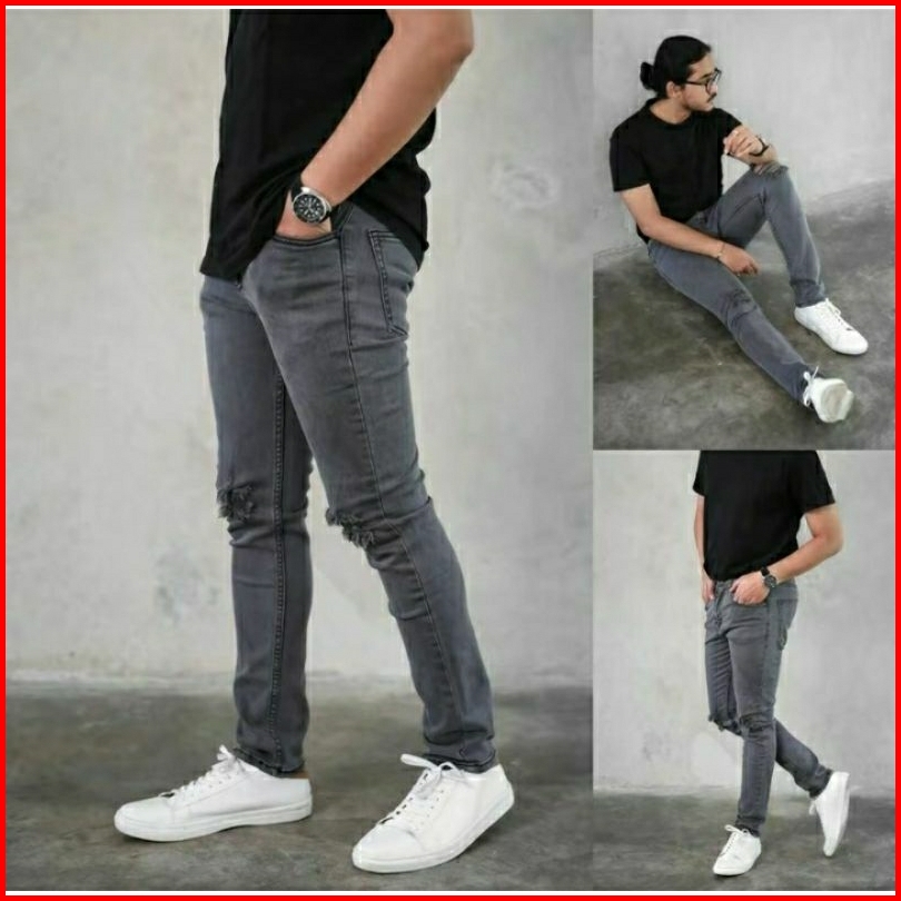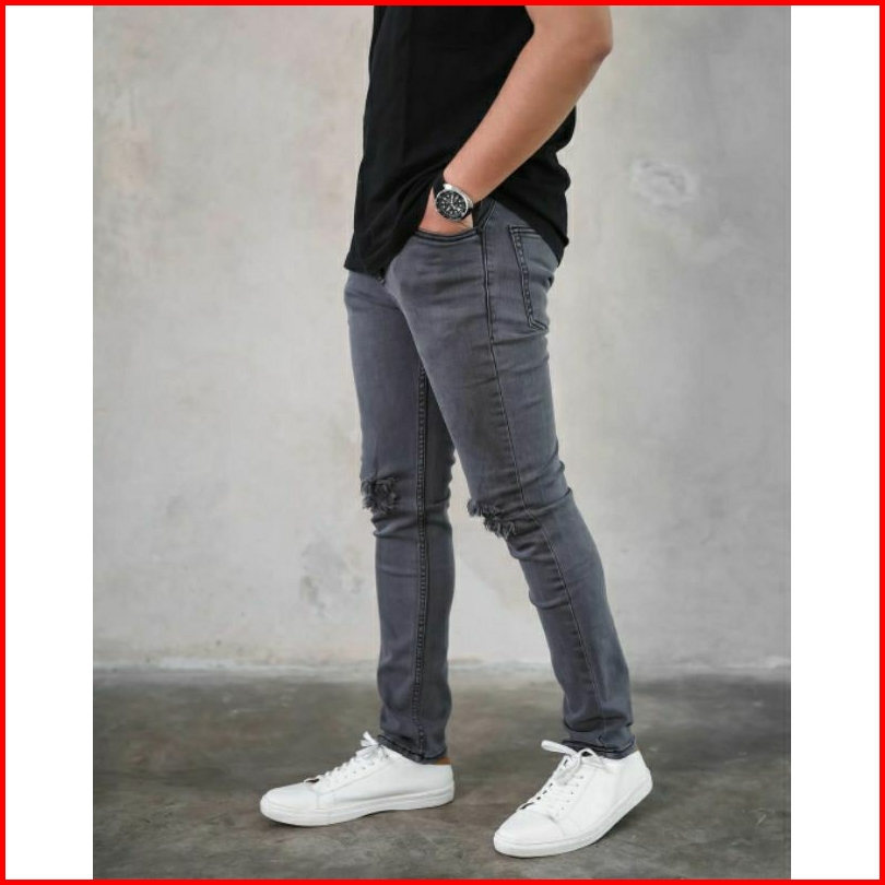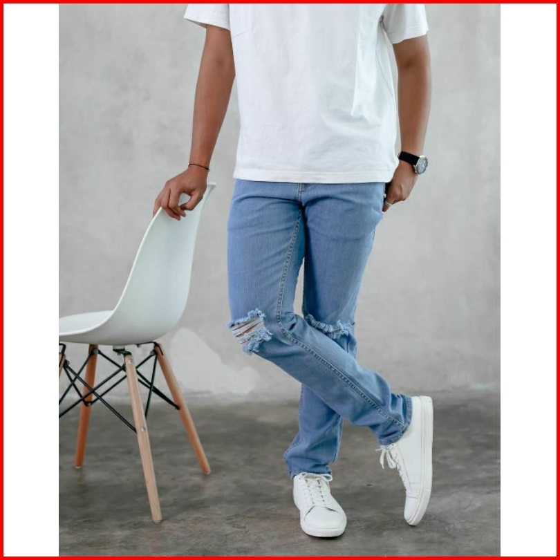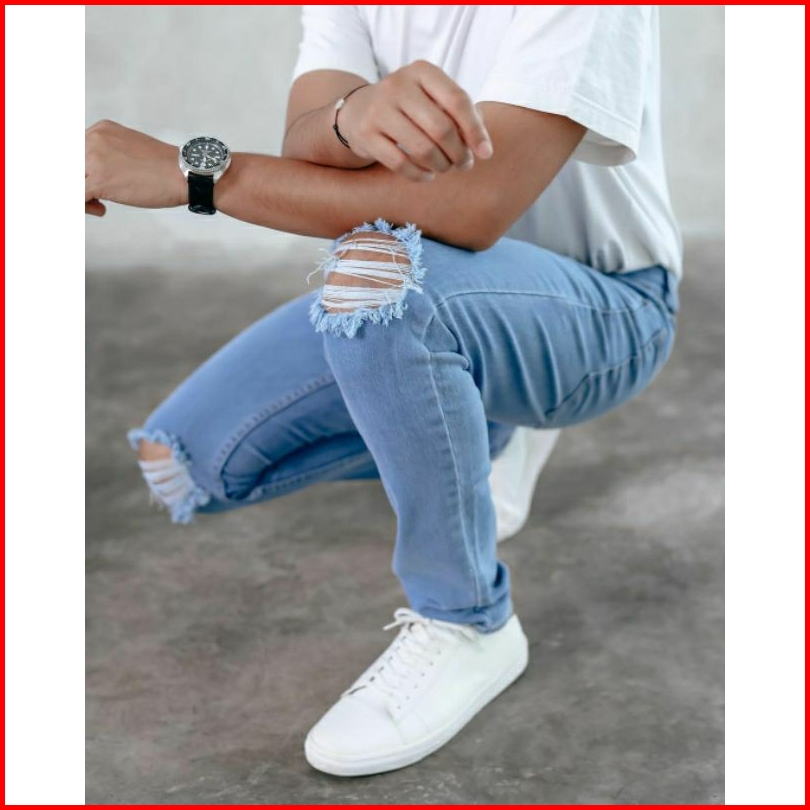 Celana Panjang Jeans Pria Slimfit Sobek Lutut Ripped Denim Pensil Soft Jeans Stretch Skinny Premium