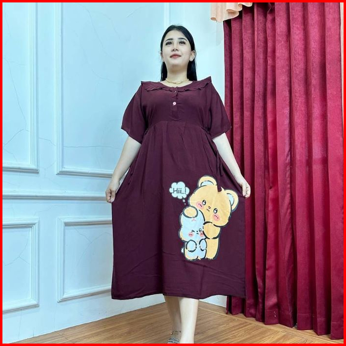 Daster Karakter Hi Bear Marun Daster Cantik Kekinian Viral Daster Rayon Daster Remaja Daster Wanita