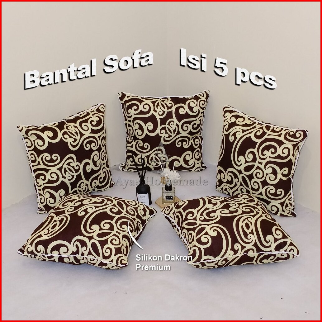 1 Set 5 Pcs Bantal Sofa Aesthetic Motif Tralis