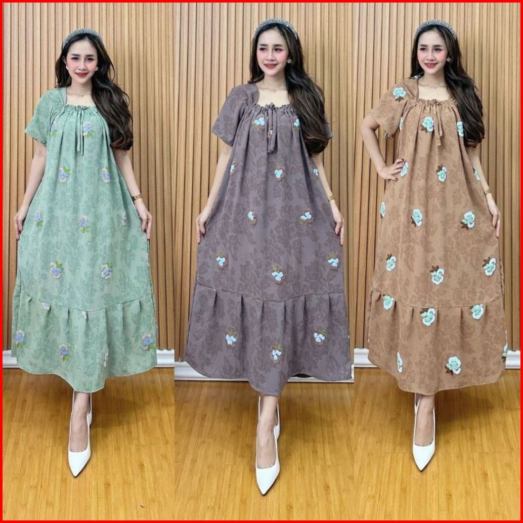 Daster Fuji Pompom Emboss Cringkell Premium Sekdress Batik Terbaru