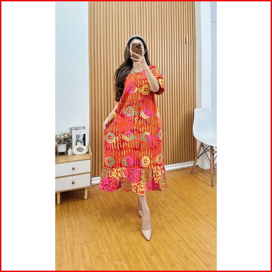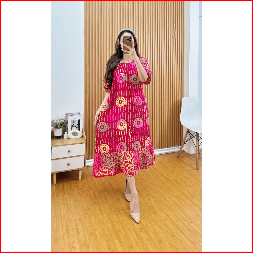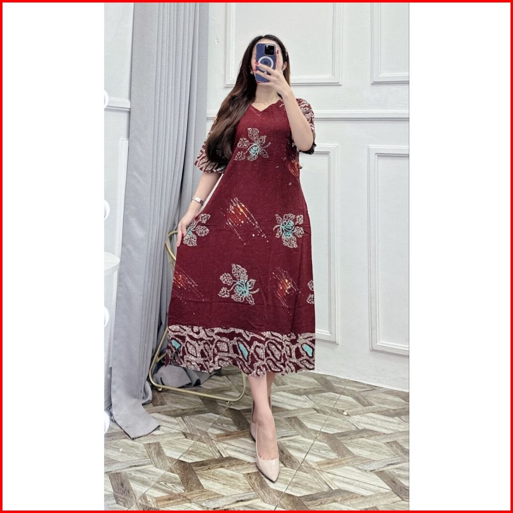 Daster Muara Batik Cap Rayon Grade A Busui Resleting Depan - Baju Tidur Daster - Daster Wanita Lengan Pendek - Daster Ke