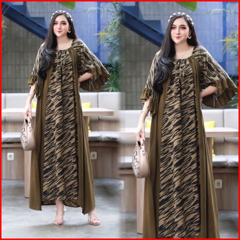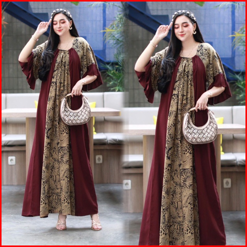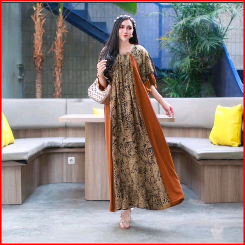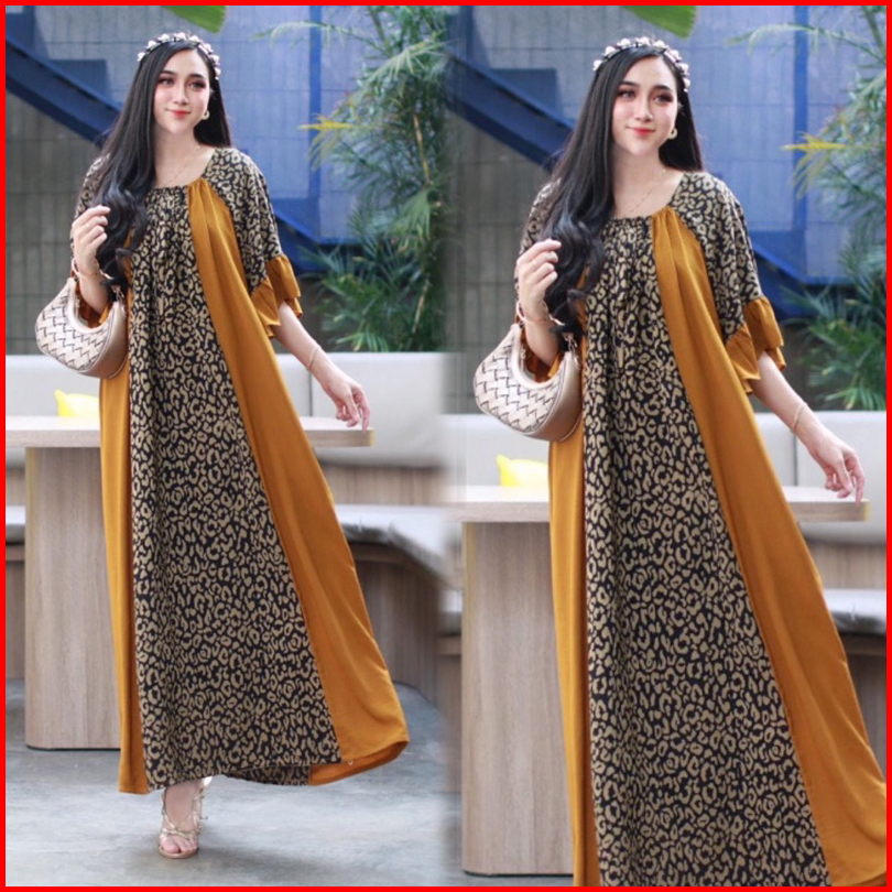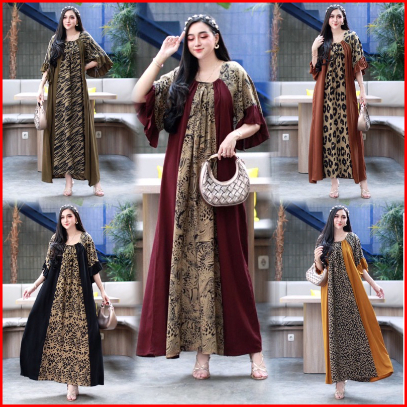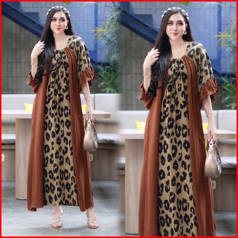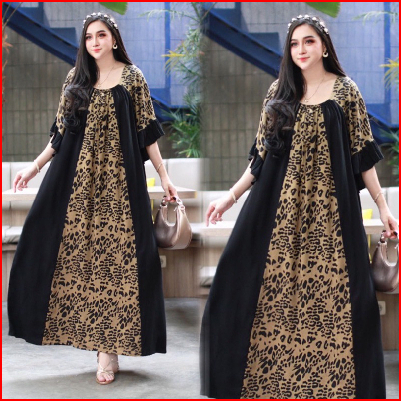 Dress Lalisa Daster Fuji Jumbo Kombinasi Macan Lingkar Dada 120 Cm Rayon Tebal Halus Viral Kekinian