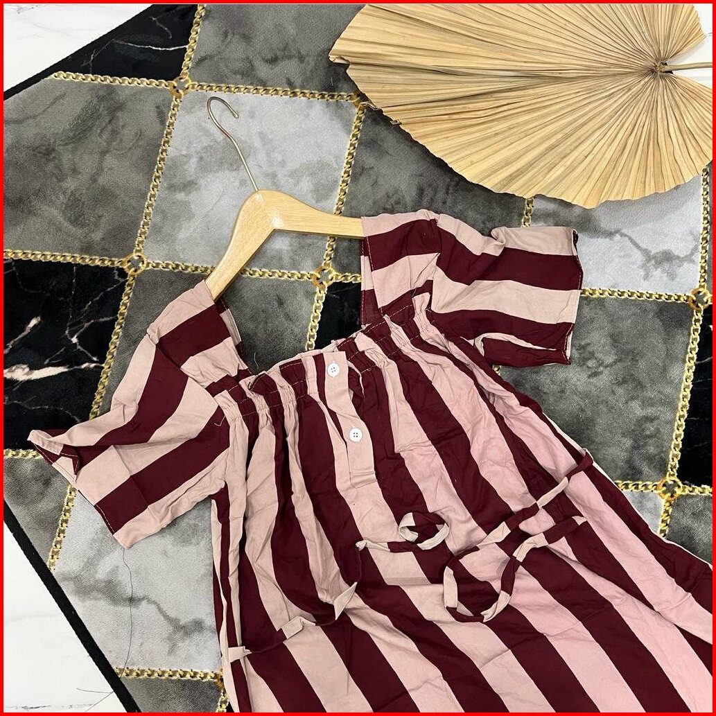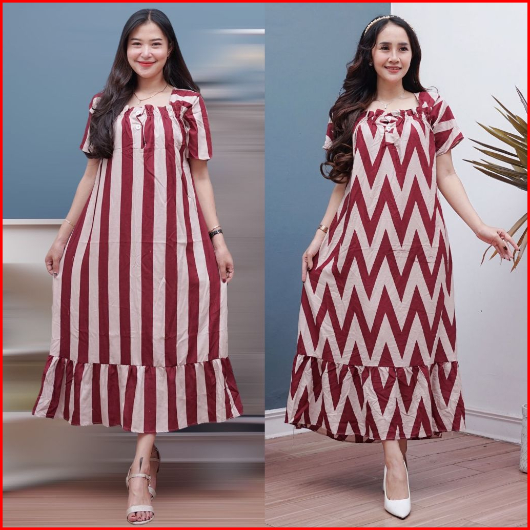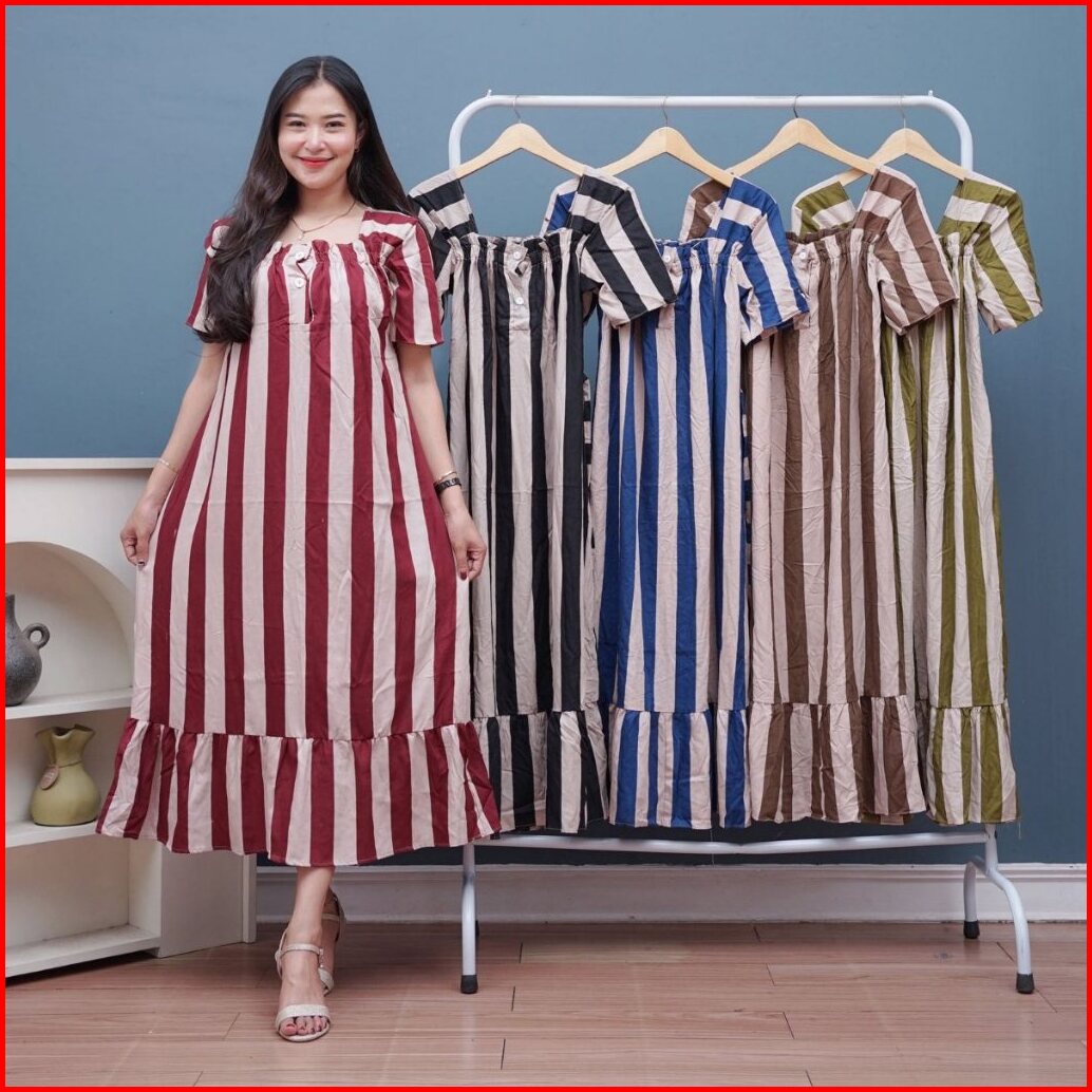Dress Daster Kekinian Terbaru Salur Fuji Jumbo Rayon Super Grade A Ori Model Depan Kancing Busui Berkerut Bumil Ld 120