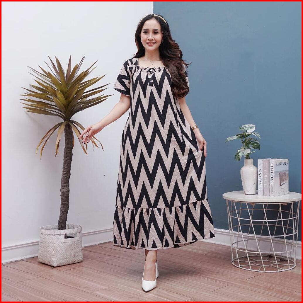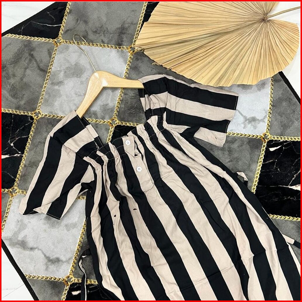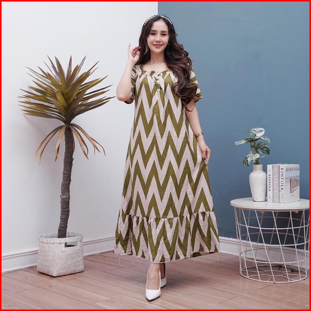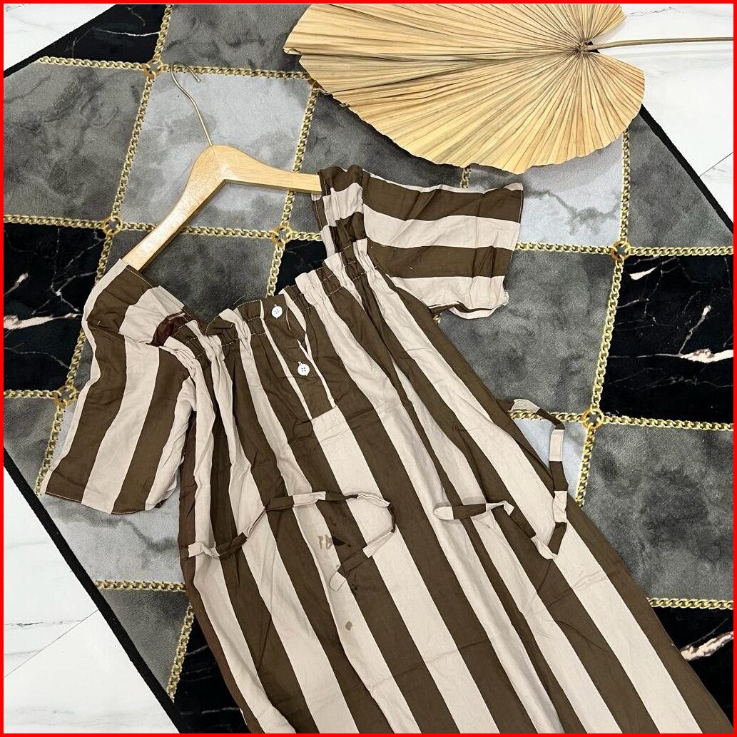 Dress Daster Kekinian Terbaru Salur Fuji Jumbo Rayon Super Grade A Ori Model Depan Kancing Busui Berkerut Bumil Ld 120